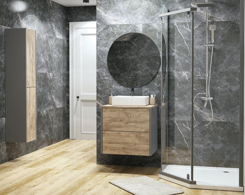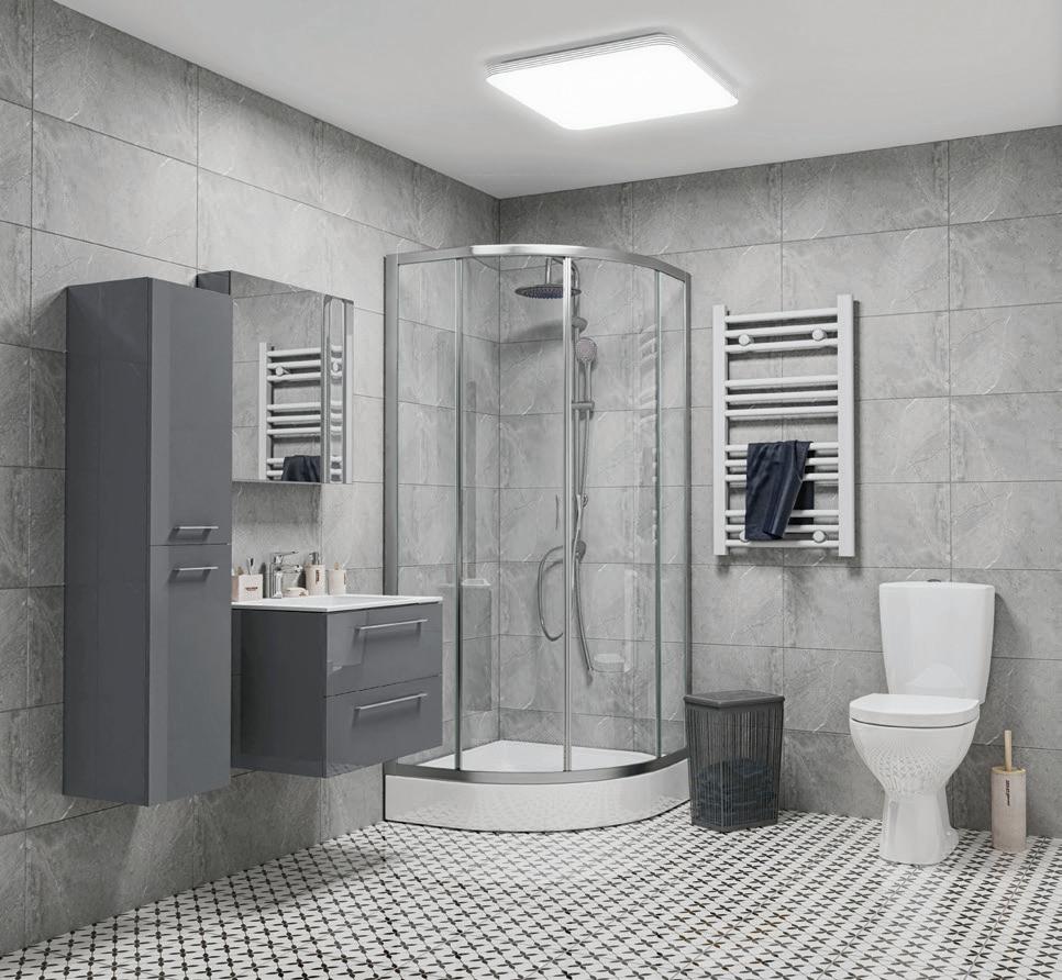 ,99 Akcesoria łazienkowe Dakar kolor: beżowy materiał: tworzywo sztuczne 1. mydelniczka - 19,99 zł 2. kubek kosmetyczny - 19,99 zł 3. pojemnik na szczoteczki - 24,99 zł 4. pojemnik kosmetyczny - 27,99 zł 5. dozownik mydła - 29,99 zł 6. szczotka WC - 64,99 zł 1 2 Plafoniera LED ADIS wym. 28 cm - 69,99 zł wym. 33 cm - 99,99 zł kl. szczeln. IP 44 1. Kabina Kama z brodzikiem - od 619,- wym. 80 x 80 x 195 cm - 619 zł, wym. 90 x 90 x 195 cm - 649 zł, szkło transparentne, hartowane, profi l chromowany, drzwi rozsuwane, brodzik akrylowy o wys. 15 cm 2. Grzejnik łazienkowy PT - 129