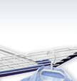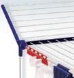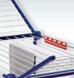stabilna i odporna na warunki atmosferyczne pojemność: 2 zawartości pralki (20 m linek) ze stali nierdzewnej, antypoślizgowe nakładki na nóżki drążki na wieszaki i 5 odpornych na wiatr wieszaków torba na spinacze i 2 uchwyty na drobną garderobę wym. 87 x 167 x 66 cm