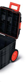 nacisk: do 100 kg duże koła transportowe: 18 cm wytrzymałe zapięcia z ABS’u oraz metalowe elementy zawiasów 4 przegrody, nosidło teleskopowa aluminiowa rękojeść wym. 44 x 45 x 102 cm