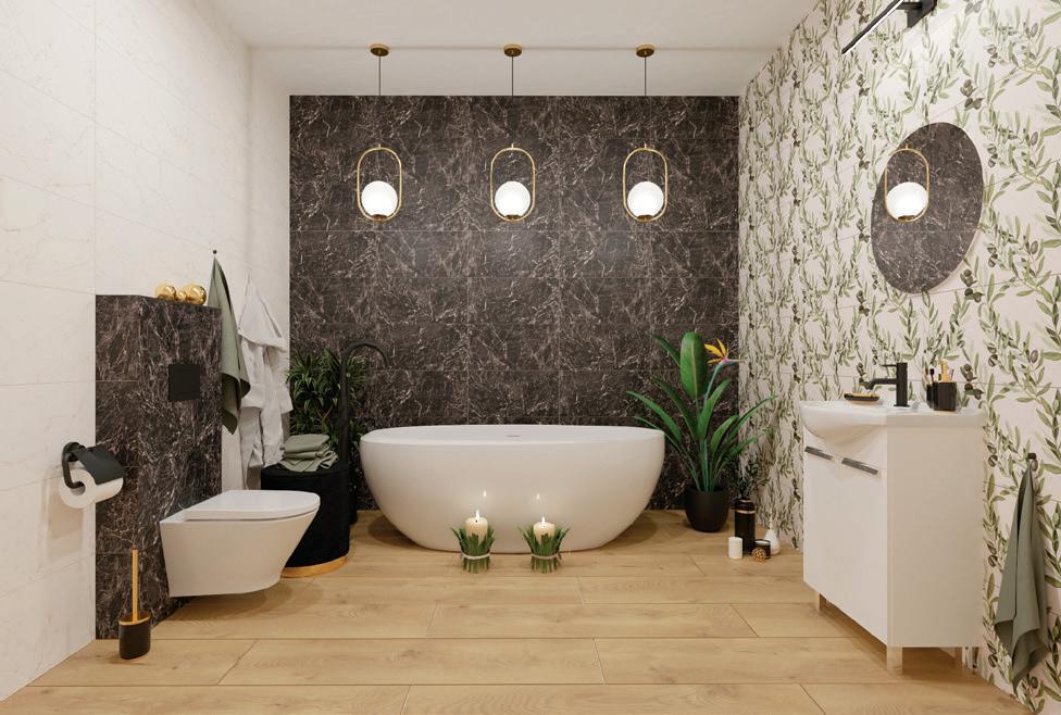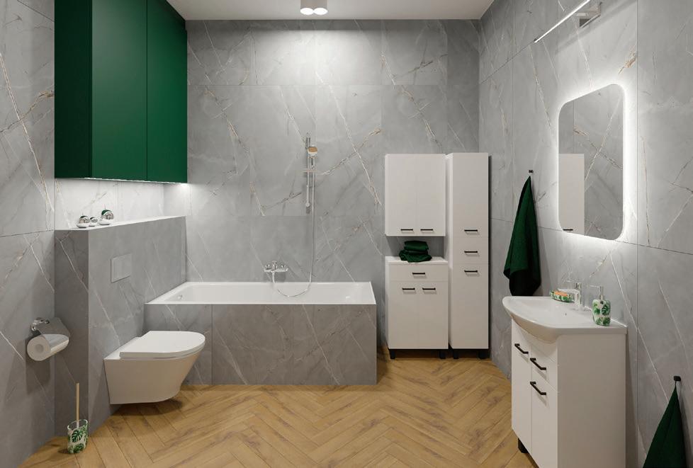1. Gres szkliwiony Valencia Grey - od 79,99/m2 wym. 60 x 60 x 0,9 cm, kolor: szary, kl. ścieralności: III, mrozoodporny, op. 1,44 m2/115,19 zł, dostępny również: wym. 60 x 120 x 0,9 cm - 117/m2 op. 1,44 m²/168,48 zł 2. Bateria wannowa Start Loop - 349,- głowica ceramiczna: 46 mm 3. Zestaw przesuwny Grohe - 189,- kolor: chrom, w zestawie: drążek, słuchawka, wąż dł. 175 cm 4. Wanna prostokątna Lorena - od 449,- akrylowa, wym. 140 x 70 cm, poj. 170 l - 449 zł, wym. 150 x 70 cm, poj. 185 l - 499 zł, wym. 160 x 70 cm, poj. 200 l - 529 zł, wym. 170 x 70 cm, poj. 215 l - 529 zł 5. Szafka wisząca Novelty - 199,- wym. 50 x 71 x 22 cm, kolor: biały, półka w zestawie 6. Szafka stojąca Novelty - 249,- wym. 50 x 83 x 30 cm, kolor: biały, półka w zestawie 7. Słupek stojący Novelty - 339,- wym. 35 x 179 x 30 cm, kolor: biały 8. Szafka stojąca Novelty z umywalką - 299,- wym. 50 x 85 x 43 cm, kolor: biały, zestaw nie zawiera armatury 9. Bateria umywalkowa Start Loop - 187,głowica ceramiczna: 28 mm 10. Lustro Senso - 349,- wym. 40 x 60 cm, zaokrąglone rogi, wymatowany obwodowo pas podświetlony diodami LED, możliwość powieszenia w pionie lub poziomie 11. Gres szkliwiony Pinea Honey - 79,99/m2 wym. 60 x 9,2 x 0,7 cm, kolor: miodowy, kl. ścieralności: IV, mrozoodporny, op. 0,60 m²/47,99 zł
