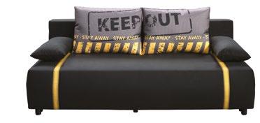 Atuty: - młodzieżowa sofa z nadrukiem na poduszkach - sprężyny bonell i pianka w siedzisku i oparciu