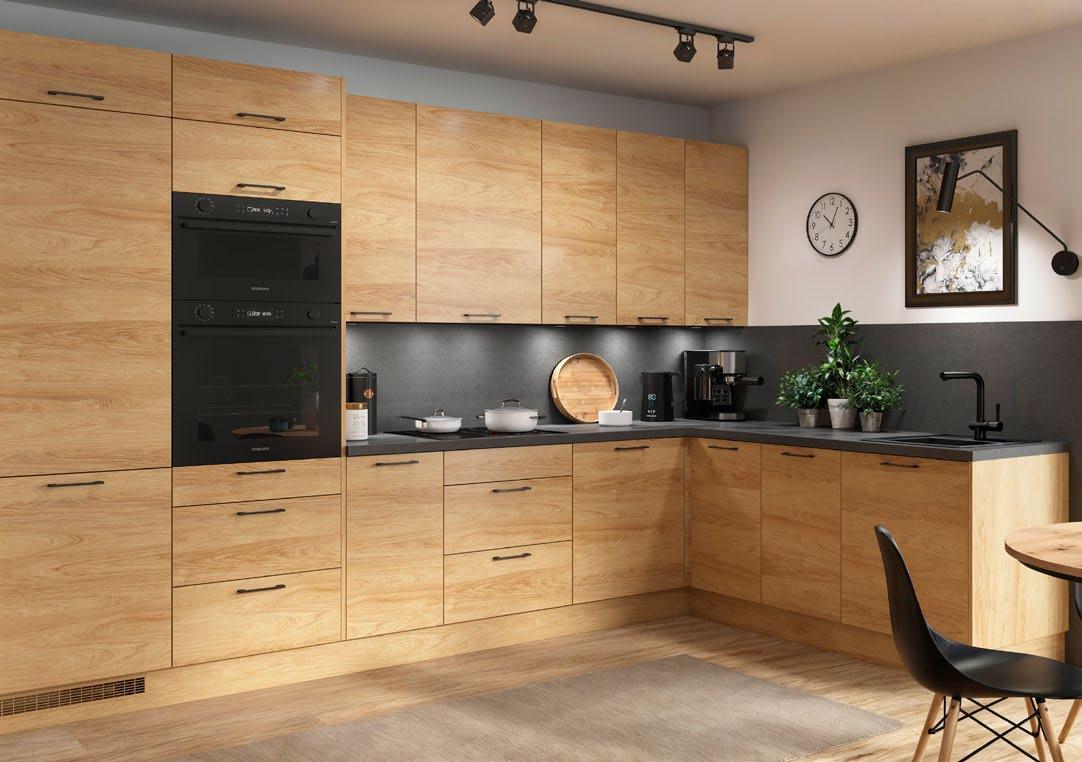nowoczesne, laminowane fronty z poziomym usłojeniem