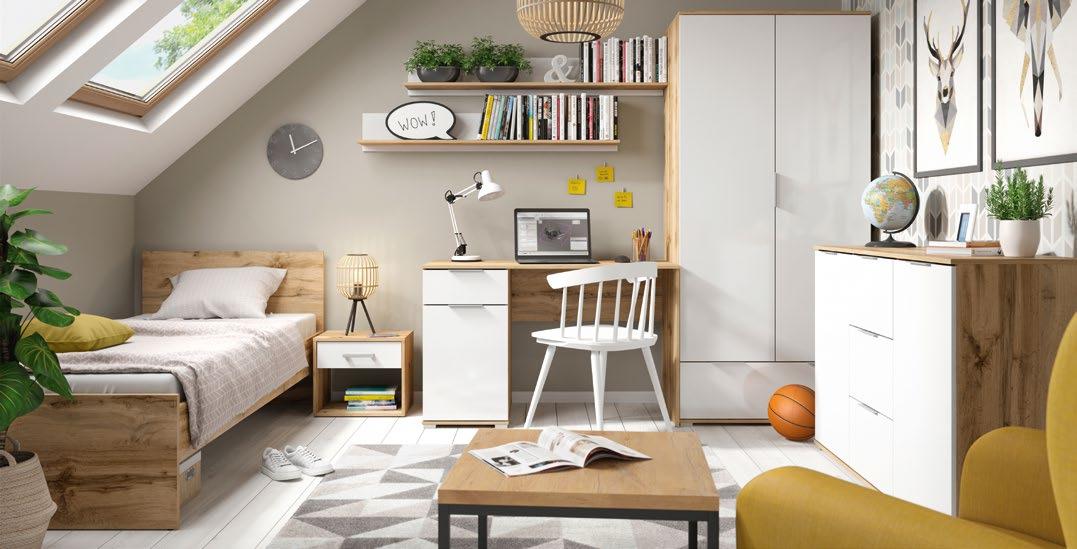 6. Szafka nocna KOM1S Matos 109,kolor: dąb wotan/biały ** cena obowiązuje w dniach 18.11-26.12.2024 *** cena łóżka nie obejmuje stelaża i materaca 229,399,- * -42% ***