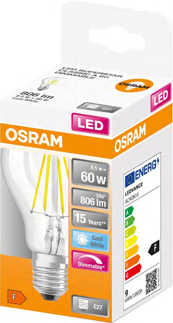 4 5 Żarówka LED A60 E27 4058075749917 806 lm, 4000 K, DIM ściemnialna Żarówka LED GU10 4058075198944 230 lm, 2700 K, 120°, DIM 10,98 zł 16,98 zł 19,98 Żarówka LED B60 E14 4058075434486 806 lm, 2700 K, DIM ściemnialna 16,98 zł 19,98 12,98 Żarówka LED G9 4058075449893 470 lm, 2700 K 52,98 zł/2 szt. 59,98 Pasek LED 4058075705463 4058075296572 24 V, 520 lm/m 3000 K IP65, 5 m 138 zł 168 Żarówka LED P60 E14 4058075447837 806 lm, 2700 K, DIM ściemnialna 21,98 zł 24,98