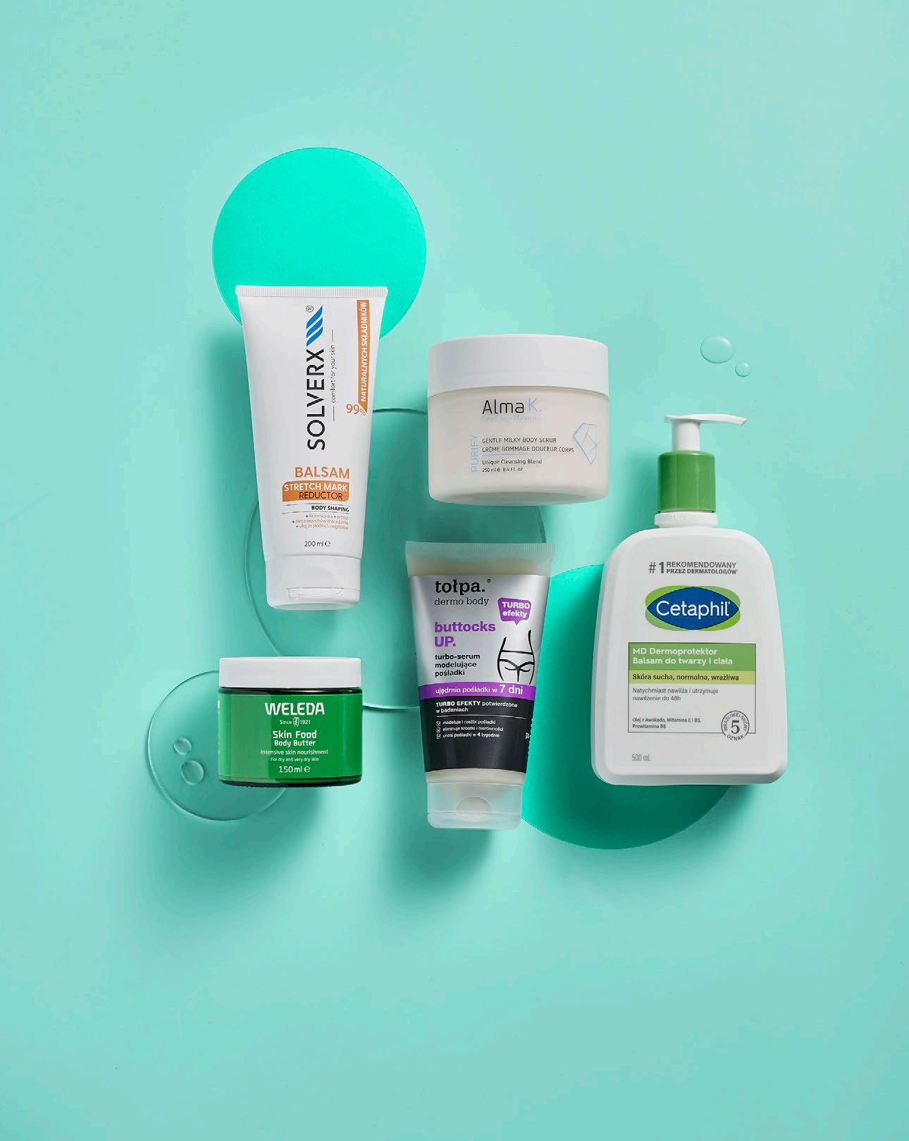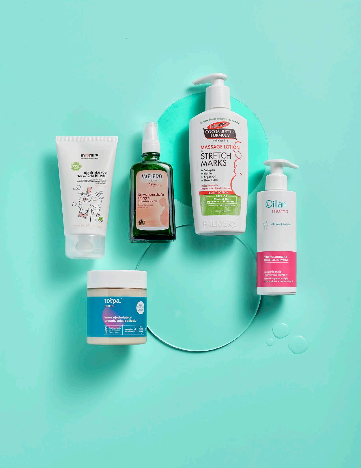 Dermokosmetyki do ciała nawilżające, ujędrniające i redukujące rozstępy zadbają o zdrowie Twojej skóry, zarówno w ciąży, jak i po porodzie. Do higieny intymnej najlepiej wybierać łagodne i ginekologiczne emulsje lub żele.