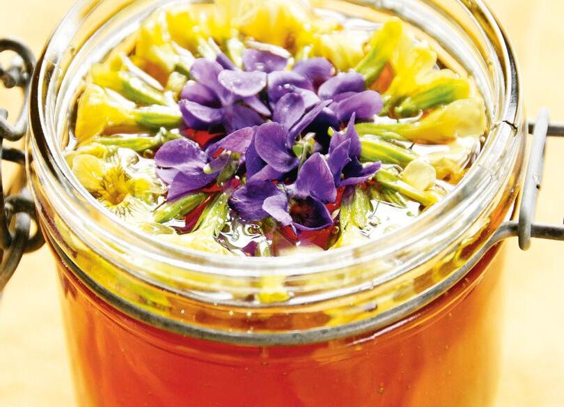 Na dnie słoika ułóż 2-centymetrową warstwę kwiatów, następnie obficie polej je miodem. Powtórz czynność, układając kwiaty warstwa na warstwie, aż do wypełnienia słoika. Odstaw go w słoneczne miejsce, najlepiej na parapet na trzy tygodnie. Dwa razy dziennie wymieszaj zawartość słoika (kwiaty będą wypływały na powierzchnię). Po upływie wskazanego czasu odsącz miód i usuń z niego kwiaty.