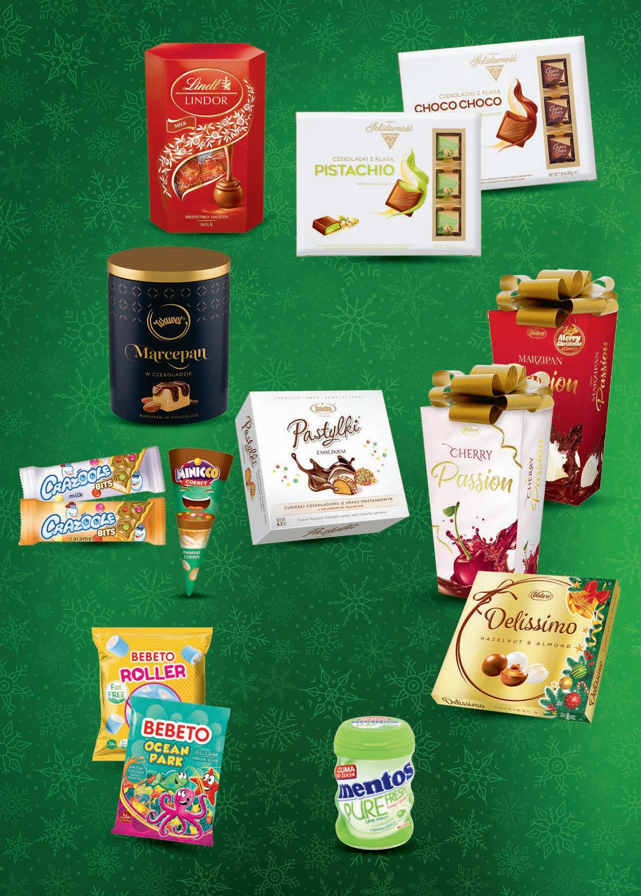 Zestaw czekolad E. WEDEL 156 g, 5,12 zł / 100 g TANIO 799 1 zestaw Czekolada E. WEDEL wybrane rodzaje 38 g, 6,55 zł / 100 g TANIO 249 1 szt. Zestaw słodyczy E. WEDEL 176 g + nauszniki TANIO 2699 1 zestaw Czekolada WAWEL wybrane rodzaje 90-100 g od 4,99 do 5,54 zł / 100 g TANIO 499 1 szt. Czekolada SCHOGETTEN wybrane rodzaje 100 g TANIO 419 1 szt. Czekolada WAWEL wybrane rodzaje 260-275 g od 5,45 do 5,77 zl / 100 g TANIO 1499 1 szt. Czekolada RITTERSPORT wybrane rodzaje 100 g TANIO 599 1 szt. 9,19 Czekolada LINDT wybrane rodzaje 80-100 g od 7,99 do 9,99 zł / 100 g 1,20 zł TANIEJ 799 1 szt. RABAT NALICZANY PRZY KASIE oferta ważna 1 - 24 grudnia