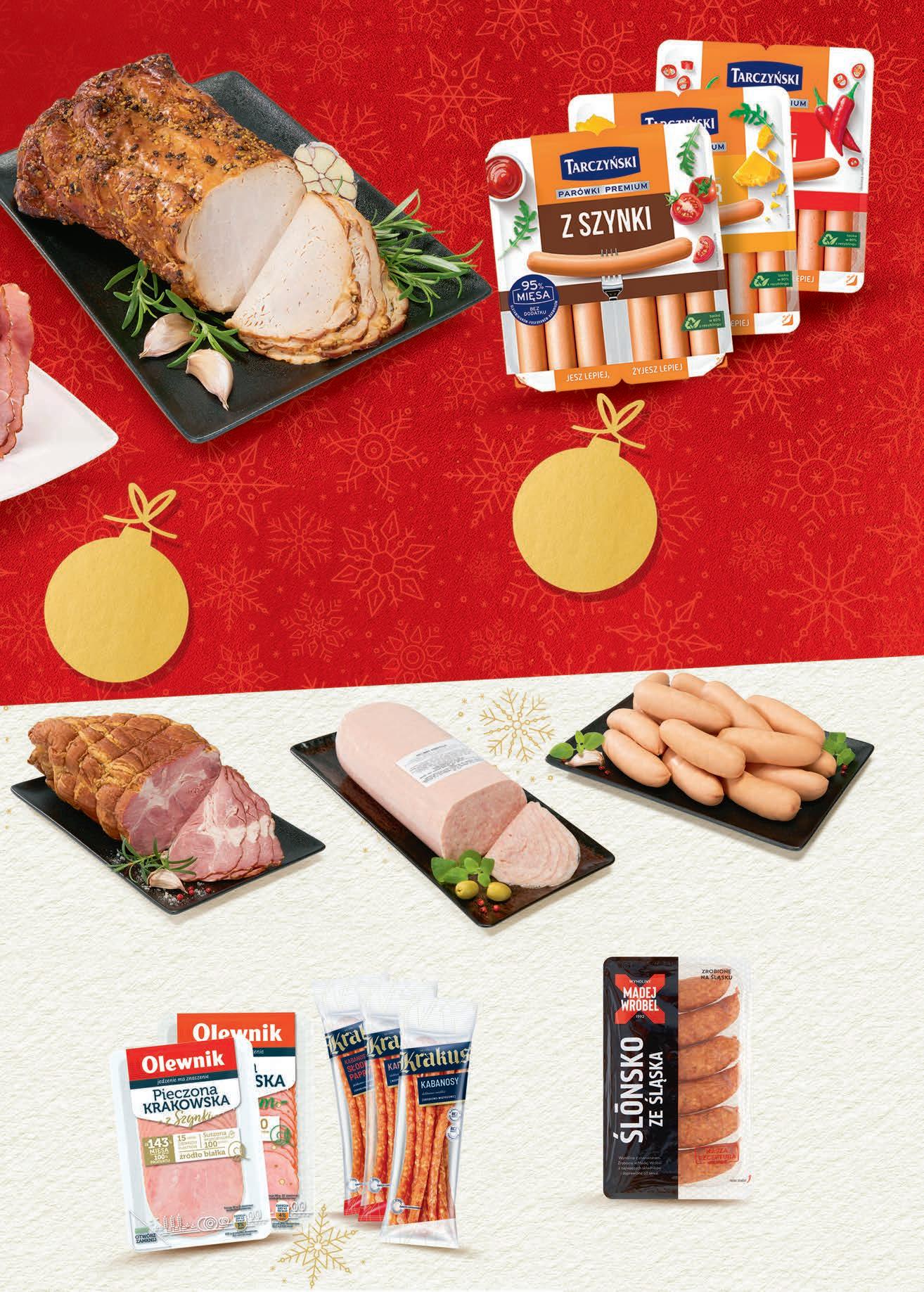 TANIEJ 5 zł 2699 1 kg Szynka cygańska OLEWNIK 31,99 Monte ZOTT 150 g 1,59 zł / 100 g 3,19 137 1 szt. przy zakupie 5 szt. Jogobella ZOTT wybrane rodzaje 150 g, 0,91 zł / 100 g 1,71 możliwy MIX rodzajów 4+1 GRATIS 239 1 szt. przy zakupie 4 szt. 3+1 GRATIS czwartek - środa 1 - 7 grudnia Kiełbasa krakowska sucha OLEWNIK 8 zł TANIEJ 4599 1 kg 53,99 • Pasztet wieprzowy • Pasztet ze szczypiorkiem PROSTO Z WĘDLINIARNI 2 zł TANIEJ 1499 1 kg 16,99 Pyszne i aromatyczne WĘDLINY idealne na świąteczny stół