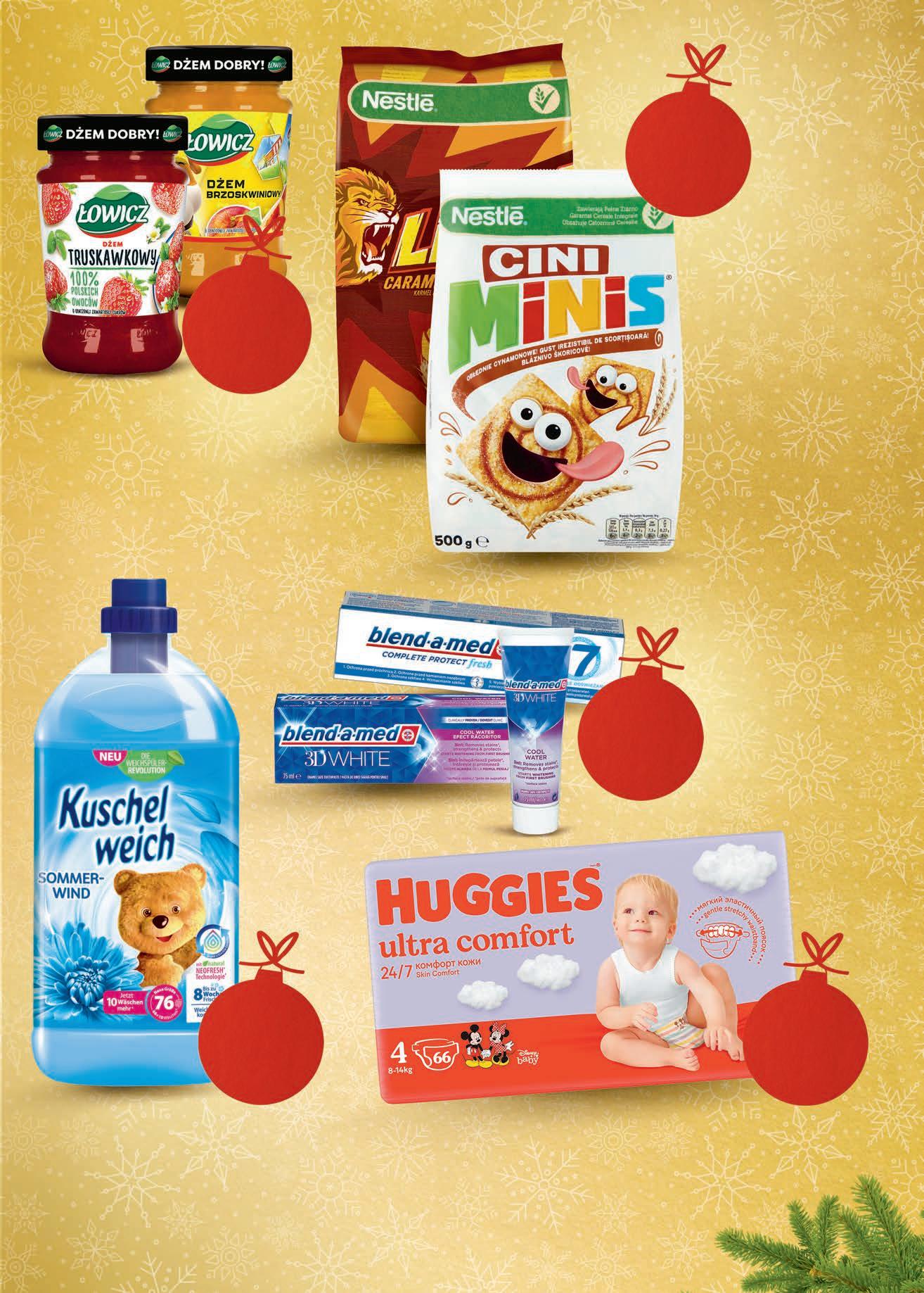 -46% drugi produkt 399 1 szt. przy zakupie 2 szt. Dżem ŁOWICZ wybrane rodzaje 260 - 280 g od 14,25 do 15,35 zł / 1 kg do 5,19 możliwy MIX rodzajów Pieluszki dla dzieci HUGGIES ULTRA COMFORT wybrane rodzaje 58 - 78 szt. od 0,71 do 0,95 zł / 1 szt. 5499 1 opak. TANIO Płyn do płukania KUSCHELWEICH wybrane rodzaje 2 l, 8,00 zł / 1 l 1599 1 szt. TANIO TANIEJ 2,80 zł Pasta do zębów BLEND-A-MED wybrane rodzaje 75 ml, 6,65 zł / 100 ml 7,79 RABAT NALICZANY PRZY KASIE 499 1 szt. Płatki NESTLE wybrane rodzaje 500 g, 17,98 zł / 1 kg 11,75 RABAT NALICZANY PRZY KASIE TANIEJ 2,76 zł 899 1 opak. -23% -35%