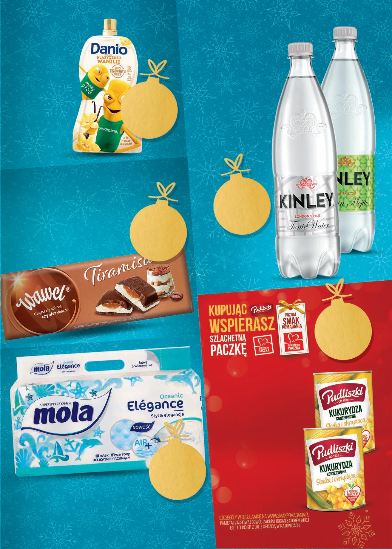 2,99 Danio DANONE wybrane rodzaje 120 -140 g od 1,85 do 2,16 zł / 100 g 259 1 szt. TANIO Papier toaletowy MOLA wybrane rodzaje 8 rolek, 1,62 zł / 1 rolka 14,49 1299 1 opak. -54% drugi produkt -32% drugi produkt 4,29 Kukurydza konserwowa PUDLISZKI Słodka i chrupiąca 400 g / 220 g 16,32 zł / 1 kg 359 1 szt. przy zakupie 2 szt. Kinley wybrane rodzaje 1 l 5,49 możliwy MIX rodzajów 399 1 szt. przy zakupie 2 szt. TANIEJ 1,50 zł TANIEJ 4 zł -30% RABAT NALICZANY PRZY KASIE Czekolada WAWEL wybrane rodzaje 258-270 g od 3,33 do 3,48 zł / 100 g 12,99 899 1 szt. duża czekolada