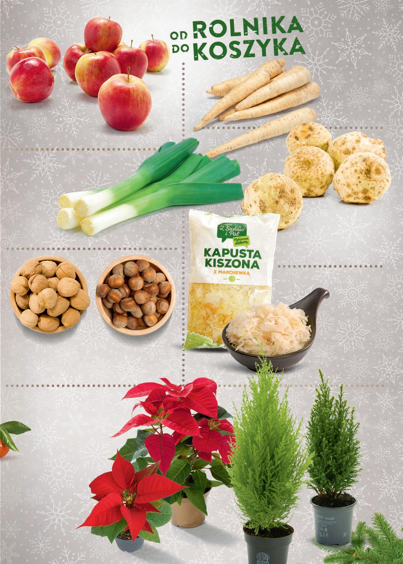 CZWARTEK – ŚRODA 1 - 7 grudnia Jabłko luz TANIO 249 1 kg • Orzech włoski - 14,99 zł • Orzech laskowy - 19,99 zł 1 kg TANIO od 1499 1 opak. Por TANIO 299 1 szt. Pietruszka luz TANIO 549 1 kg Seler luz TANIO 449 1 kg Kapusta kiszona luz / opak. 1 kg TANIO 449 1 kg / 1 opak. Poinsecja don. 9 cm - 6,99 zł Poinsecja don. 10,5 - 11 cm - 13,99 zł Golteria don. 10,5 cm - 12,99 zł Cyprysik ellwoodi don. 9 cm - 9,99 zł Cyprysik Snow White don. 10,5 cm - 12,99 zł Cyprysik jasny don. 14 cm - 19,99 zł Cyprysik ellwoodi don. 13 cm - 19,99 zł TANIO od 699 1 szt.