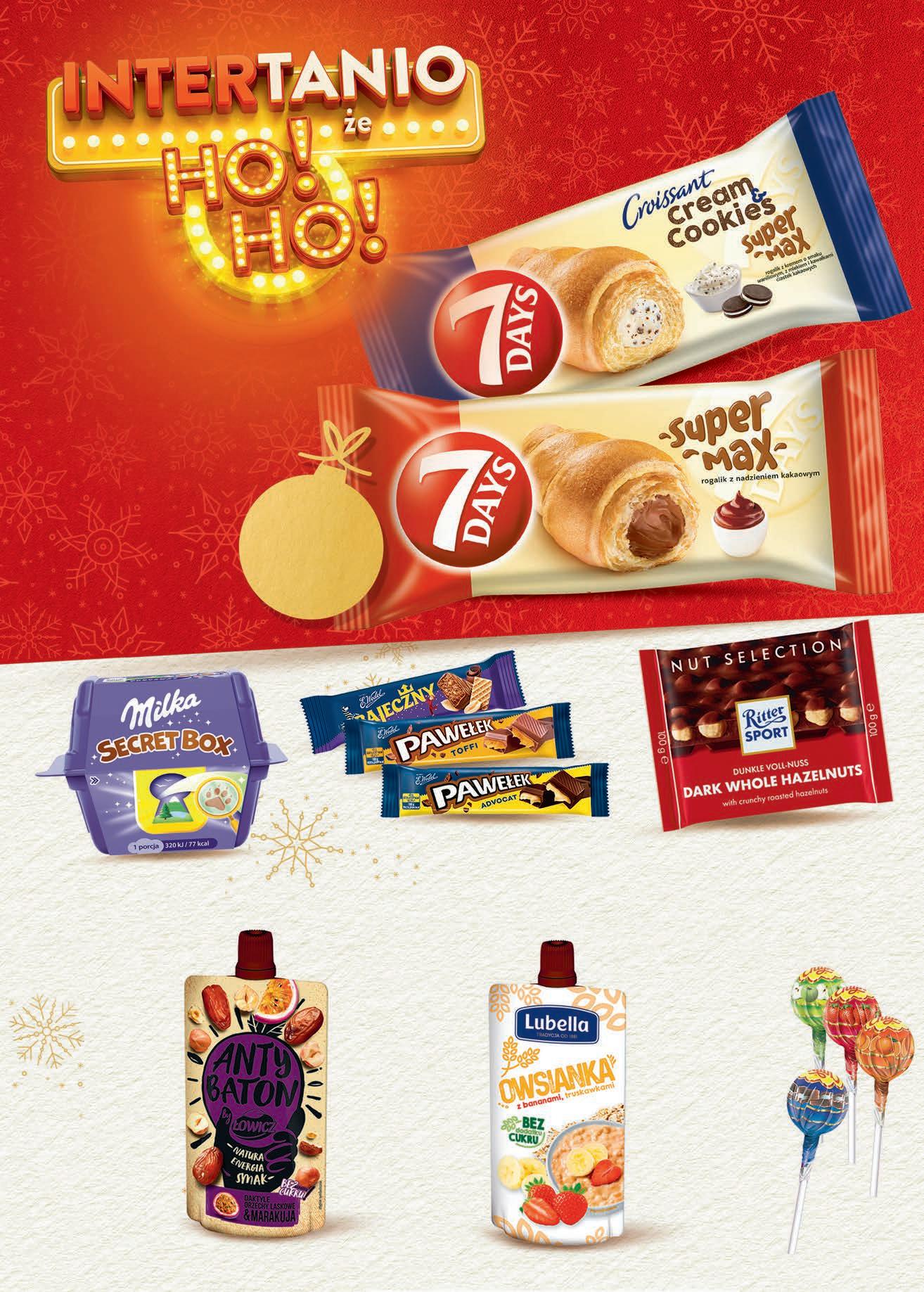 Rogalik 7DAYS wybrane rodzaje 110 g, 2,45 zł / 100 g 2,99 RABAT NALICZANY PRZY KASIE 269 1 szt. Czekolada RITTERSPORT wybrane rodzaje 100 g TANIO 529 1 szt. 6,19 Anty Baton ŁOWICZ wybrane rodzaje 120 g, 2,16 zł / 100 g TANIO 259 1 szt. 3,19 Owsianka LUBELLA wybrane rodzaje 100 g TANIO 259 1 szt. 3,19 Lizak CHUPA CHUPS wybrane rodzaje 12 g, 7,42 zł / 100 g 3+1 GRATIS 089 1 szt. przy zakupie 4 szt. 1,19 możliwy MIX rodzajów TANIO PROMOCJA 1 - 14.12 PROMOCJA 1 - 14.12 Secret Box MILKA TANIO 399 1 szt. -27% 185 1 szt. przy zakupie 3 szt. 2,55 Baton E. WEDEL wybrane rodzaje 44 - 45 g od 4,11 do 4,20 zł / 100 g możliwy MIX rodzajów