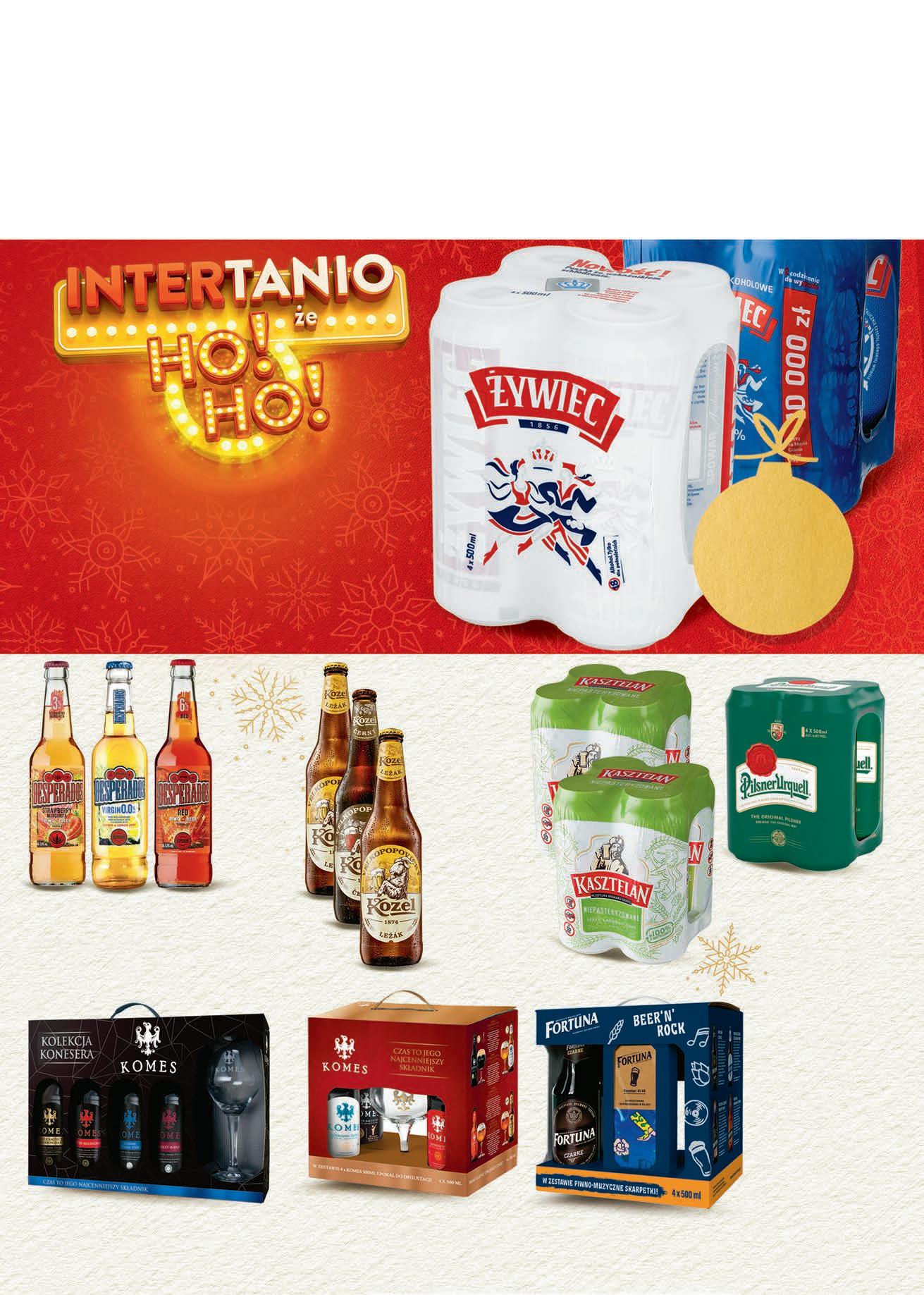 Piwo 4 x 0,5 l + Pokal KOMES TANIO 3499 1 zestaw Piwo 4 x 0,5 l + Skarpetki FORTUNA TANIO 3499 1 zestaw Piwo 4 x 0,5 l + Kielich KOMES TANIO 3499 1 zestaw Piwo KOZEL wybrane rodzaje 0,5 l, 6,58 zł / 1 l butelka zwrotna TANIO 329 1 szt. przy zakupie 3 szt. 3,99 możliwy MIX rodzajów Piwo KASZTELAN Niepasteryzowane 4 x 0,5 l 11,96 zł / 4-pack 5,98 zł / 1 l cena regularna 13,96 zł / 4-pack 3,49 Piwo PILSNER URQUELL jasne 4 x 0,5 l 21,96 zł / 4-pack, 10,98 zł / 1 l cena regularna 22,49 zł / 4-pack 5,62 TANIO 549 1 puszka przy zakupie 4-pack 1/2 LITRA PIWA ZAWIERA 25 GRAMÓW CZYSTEGO ALKOHOLU ETYLOWEGO SPRZEDAŻ ALKOHOLU OSOBOM DO LAT 18 JEST PRZESTĘPSTWEM do 3,87 Piwo ŻYWIEC wybrane rodzaje 4 x 0,5 l 10,76 zł / 4-pack 5,38 zł / 1 l cena regularna do 15,49 zł / 4-pack 269 1 puszka przy zakupie 2 x 4-pack -61% drugi 4-pack do Piwo DESPERADOS wybrane rodzaje 0,4 l, 9,23 zł / 1 l -22% 369 1 szt. przy zakupie 3 szt. 4,75 możliwy MIX rodzajów CZWARTEK – ŚRODA 1 - 7 grudnia możliwy MIX rodzajów -28% drugi 4-pack 299 1 puszka przy zakupie 2 x 4-pack