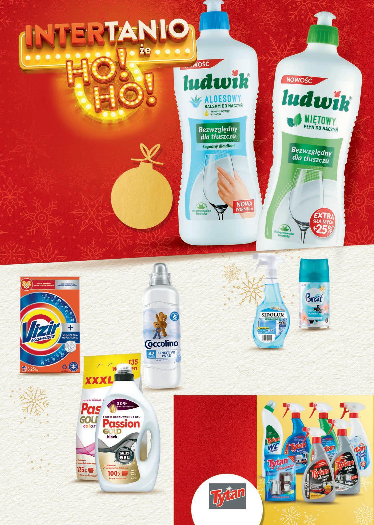 15% TANIEJ produkty* marki Płyn do naczyń Balsam do naczyń LUDWIK wybrane rodzaje 0,9 kg, 6,10 zł / 1 kg 6,19 Proszek do prania VIZIR 3,25 kg, 12,30 zł / 1 kg 50 prań, 0,80 zł / 1 pranie TANIO 3999 1 opak. • Żel do prania - 31,99 zł 4 l, 8,00 zł / 1 l 100 prań, 0,32 zł / 1 pranie • Proszek do prania - 49,99 zł 8,1 kg, 6,17 zł / 1 kg 135 prań, 0,37 zł / 1 pranie PASSION wybrane rodzaje TANIO od 3199 1 opak. *dotyczy wybranych produktów Odświeżacz powietrza BRAIT aerozol wybrane rodzaje 250 ml, 4,00 zł / 100 ml 13,49 TANIEJ 3,50 zł 999 1 szt. Płyn do płukania COCCOLINO wybrane rodzaje 1,05 l, 11,42 zł / 1 l 13,99 TANIEJ 2 zł 1199 1 szt. Płyn do mycia szyb SIDOLUX wybrane rodzaje 0,5 l, 13,98 zł / 1 l TANIO 699 1 szt. 7,79 549 1 szt. TANIO CZWARTEK – ŚRODA 1 - 7 grudnia -25%