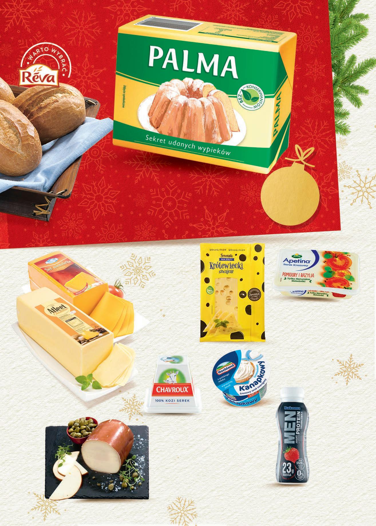 CZWARTEK – ŚRODA 1 - 7 grudnia • Ser Cheddar • Ser Mimolette • Ser Gouda Gold • Ser Maasdam ZM SOKOŁÓW TANIO 399 100 g Rolada kozia dojrzewająca CASTILLO TANIO 569 100 g Ser żółty SERENADA plastry wybrane rodzaje 135 g, 3,92 zł / 100 g TANIO 529 1 opak. 5,99 Kanapkowy HOCHLAND wybrane rodzaje 130 g, 3,30 zł / 100 g TANIO 429 1 szt. 4,79 Serek kremowy APETINA wybrane rodzaje 125 g, 3,43 zł / 100 g TANIO 429 1 szt. 4,99 Jogurt pitny BAKOMA MEN wybrane rodzaje 230 g, 1,56 zł / 100 g TANIO 359 1 szt. 3,99 Ser kozi CHAVROUX wybrane rodzaje 150 g, 8,99 zł / 100 g 14,99 1,50 zł TANIEJ 1349 1 szt. 299 1 szt. Palma KRUSZWICA 250 g, 11,96 zł / 1 kg 4,19 TANIEJ 1,20 zł -28%