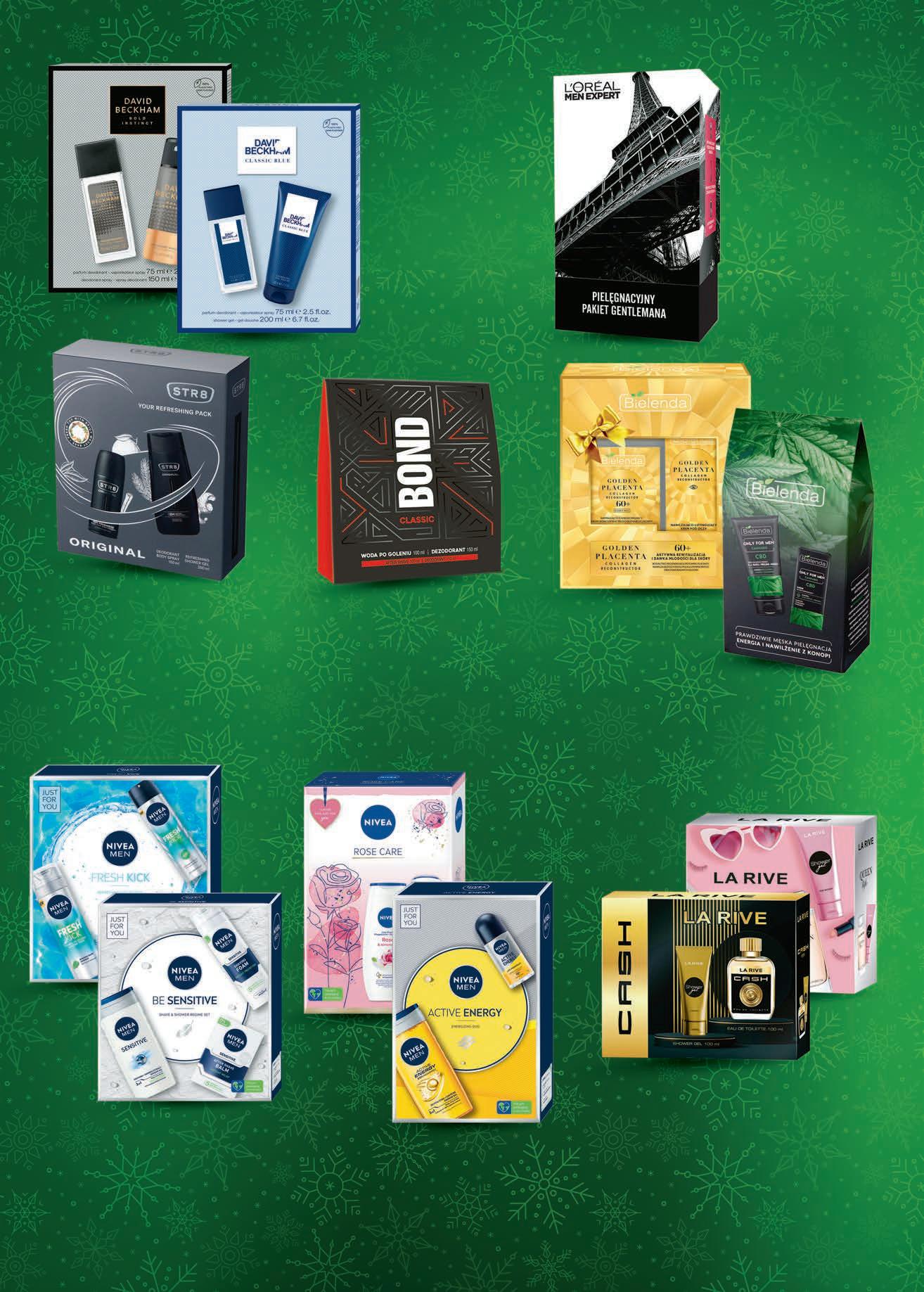 TANIO 6999 1 zestaw Krem do twarzy, 50 ml + Krem pod oczy, 15 ml + Dezodorant roll-on, 50 ml L’ORÉAL MEN EXPERT wybrane rodzaje TANIO 2499 1 zestaw Woda po goleniu, 100 ml + Dezodorant spray, 150 ml BOND wybrane rodzaje Dezodorant spray, 150 ml + Żel pod prysznic , 250 ml STR8 wybrane rodzaje TANIO 2499 1 zestaw TANIO od 3999 1 zestaw • Pasta do mycia twarzy 3 w 1 Pasta + Peeling + Maska, 150 g + Krem do twarzy, 50 ml - 39,99 zł • Krem do twarzy, 50 ml + Krem pod oczy, 15 ml - 39,99 zł wybrane rodzaje • Krem do twarzy, 50 ml + Krem pod oczy, 15 ml - 46,99 zł wybrane rodzaje BIELENDA TANIO 5999 1 zestaw • Żel pod prysznic , 250 ml + Pianka do golenia, 200 ml + Balsam po goleniu, 100 ml • Dezodorant roll-on, 50 ml + Pianka do golenia, 200 ml + Woda po goleniu, 100 ml NIVEA TANIO 2599 1 zestaw • Dezodorant spray, 150 ml + Żel pod prysznic , 250 ml • Dezodorant roll-on, 50 ml + Żel pod prysznic , 250 ml NIVEA TANIO 3599 1 zestaw • Woda perfumowana, 100 ml + Żel pod prysznic , 100 ml • Woda perfumowana, 90 ml + Żel pod prysznic , 100 ml • Woda perfumowana, 75 ml + Żel pod prysznic , 100 ml LA RIVE wybrane rodzaje TANIO 4899 1 zestaw • Dezodorant atomizer, 75 ml + Dezodorant spray, 150 ml • Dezodorant atomizer, 75 ml + Żel pod prysznic , 200 ml DAVID BECKHAM