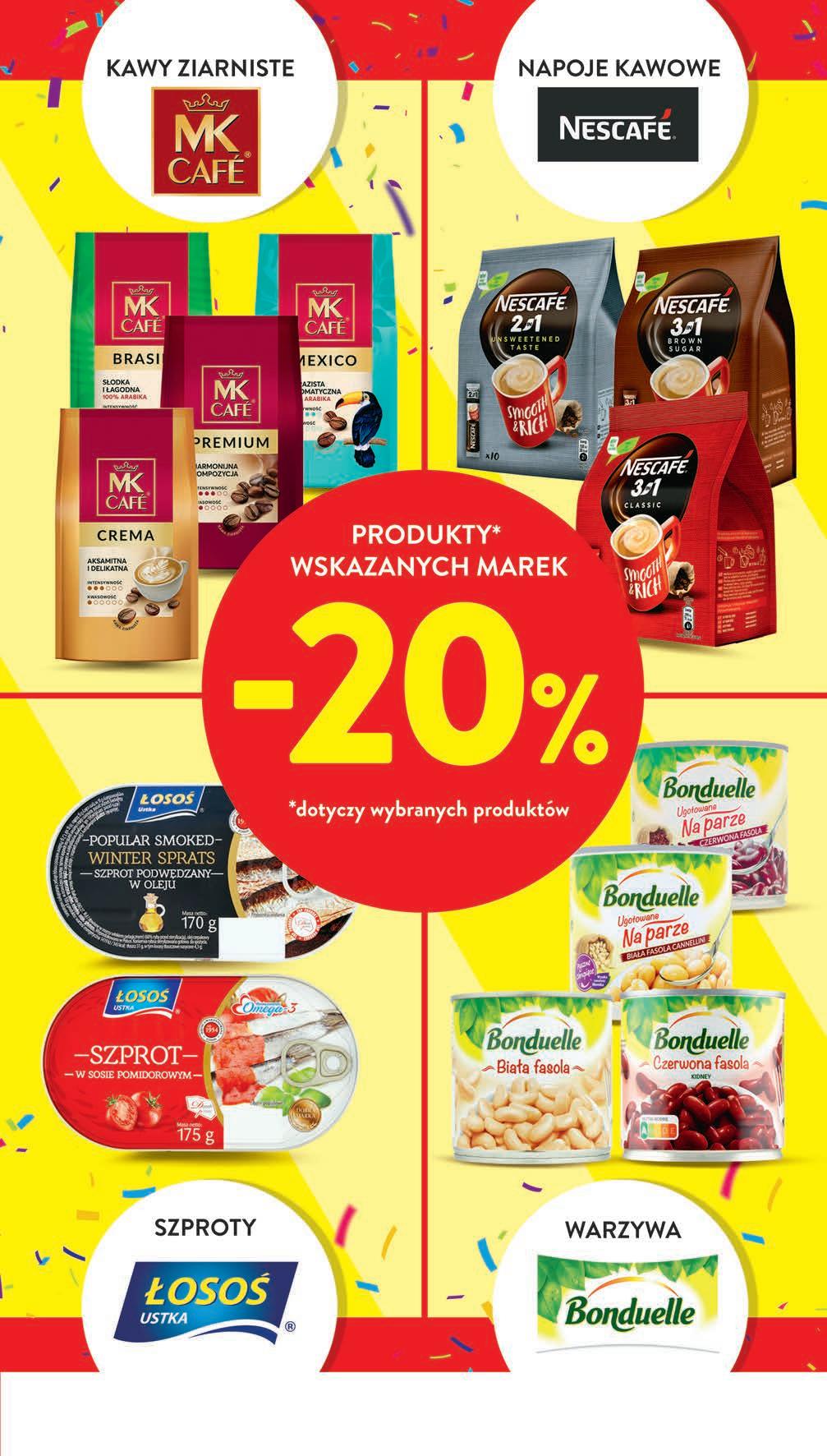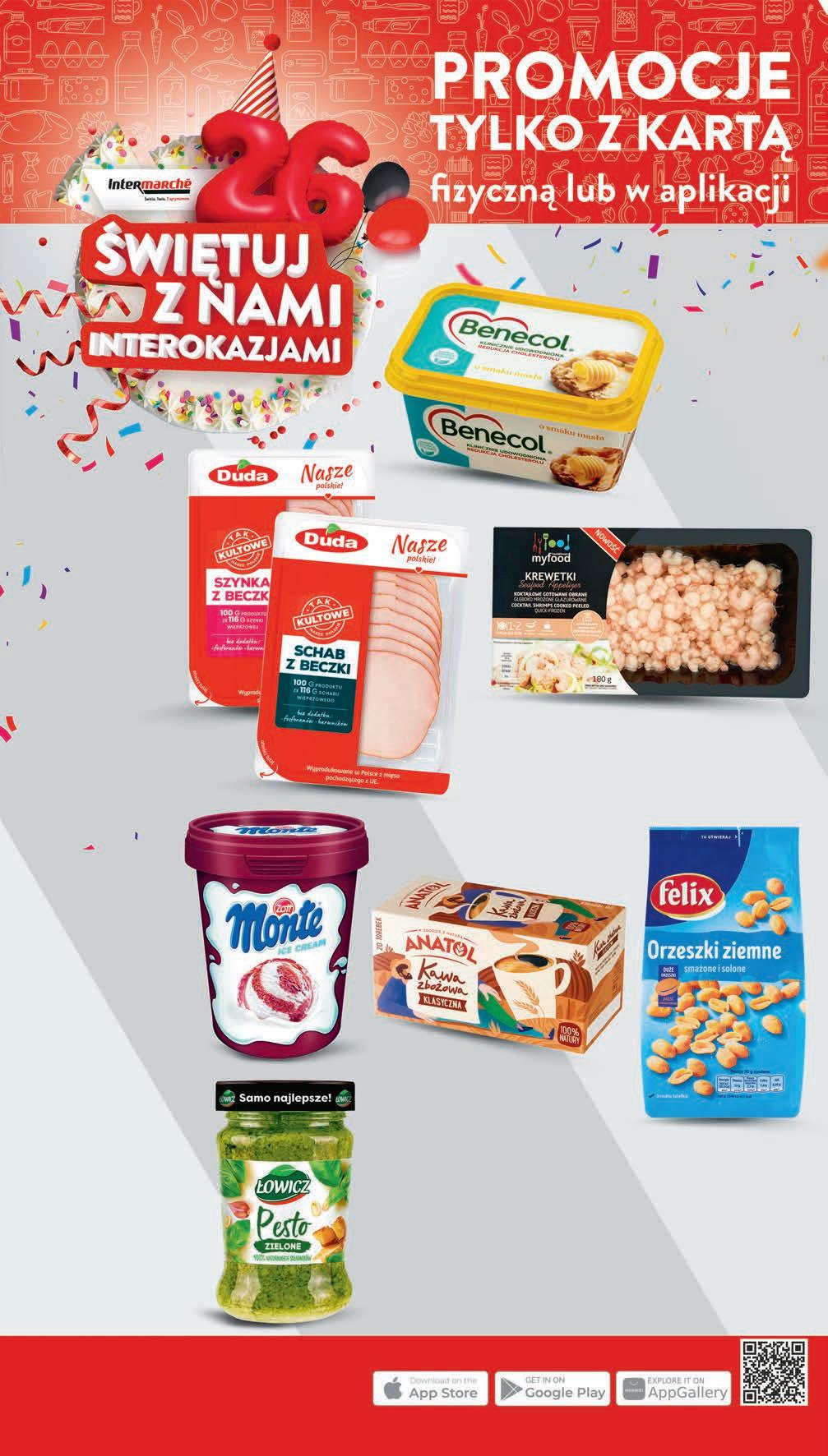 Pobierz aplikację lub odbierz kartę w sklepie i ZYSKAJ DODATKOWE PROMOCJE 749 1 opak. drugi produkt -23% przy zakupie 2 opak. 8,49 * • Schab z beczki • Szynka z beczki DUDA plastry 100 g, 74,90 zł / 1 kg *Cena sprzed pierwszego zastosowania obniżki i cena bez karty 729 1 szt. 9,19 * -20% Pesto ŁOWICZ wybrane rodzaje 180 g, 40,50 zł / 1 kg *Najniższa cena z 30 dni przed obniżką i cena bez karty Kawa zbożowa ANATOL wybrane rodzaje 20 torebek x 4,2 g 4,75 zł / 100 g *Najniższa cena z 30 dni przed obniżką i cena bez karty 399 1 opak. 4,99 * -20% Krewetki MY FOOD koktajlowe gotowane obrane 180 g, 77,22 zł / 1 kg *Cena sprzed pierwszego zastosowania obniżki i cena bez karty 1399 1 opak. 21,49 * -34% Benecol wybrane rodzaje 400 g, 41,23 zł / 1 kg *Cena sprzed pierwszego zastosowania obniżki i cena bez karty PROMO! 1649 1 szt. 17,99 * 1249 1 opak. 13,99 * -10% Orzeszki FELIX wybrane rodzaje 380 g, 3,29 zł / 100 g *Najniższa cena z 30 dni przed obniżką i cena bez karty Lody MONTE 0,46 l, 36,93 zł / 1 l *Cena sprzed pierwszego zastosowania obniżki i cena bez karty 1699 1 szt. 20,99 * -19% możliwy MIX rodzajów