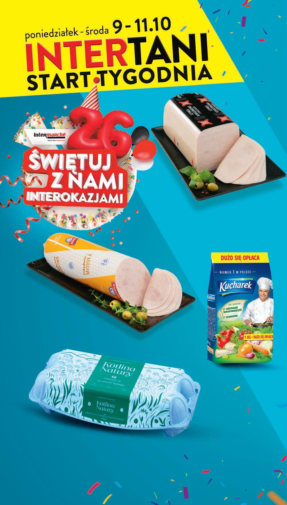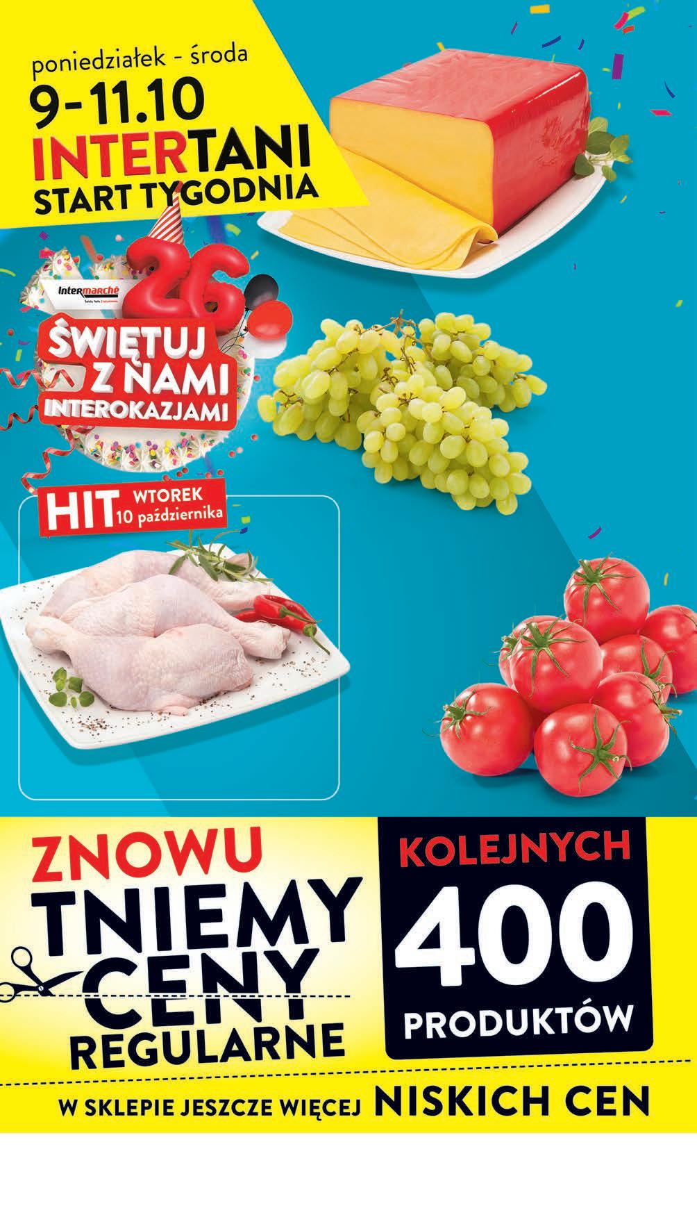 Oferta promocyjna nr 40/2023 ważna w dniach wskazanych na stronach lub do wyczerpania zapasu. Sklepy w których obowiązuje promocja gazetkowa dostępne na stronie www.intermarche.pl. Sprzedaż wyłącznie detaliczna. Ceny zawierają podatek VAT. Ze względu na franczyzowy charakter sieci Intermarché, lokalnie ceny w sklepach mogą się różnić. Zdjęcia i wygląd towarów w gazetce mogą nieznacznie odbiegać od rzeczywistości. Za ewentualne błędy w druku uprzejmie przepraszamy.