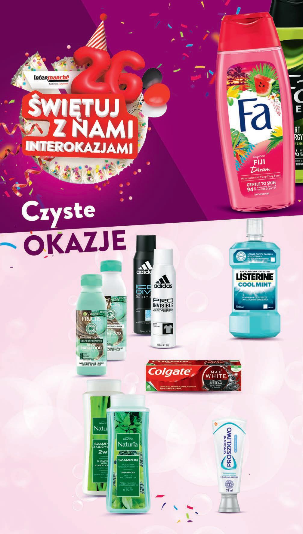 Żel pod prysznic FA wybrane rodzaje 400 ml , 18,73 zł / 1 l *Najniższa cena z 30 dni przed obniżką. Cena regularna 14,39 zł 749 1 szt. drugi produkt -84% przy zakupie 2 szt. 12,99 * możliwy MIX rodzajów Dezodorant ADIDAS spray wybrane rodzaje 150 ml, 7,99 zł / 100 ml *Najniższa cena z 30 dni przed obniżką 1199 1 szt. 13,39 * -10% Płyn do płukania jamy ustnej LISTERINE wybrane rodzaje 500 ml, 19,98 zł / 1 l *Najniższa cena z 30 dni przed obniżką 999 1 szt. 13,99 * -28% Pasta do zębów COLGATE wybrane rodzaje 75 ml, 14,65 zł / 100 ml *Najniższa cena z 30 dni przed obniżką 1099 1 szt. 15,49 * -29% Pasta do zębów SENSODYNE wybrane rodzaje 75 ml, 16,65 zł / 100 ml *Najniższa cena z 30 dni przed obniżką 1249 1 szt. 13,89 * -10% • Szampon do włosów • Odżywka do włosów FRUCTIS wybrane rodzaje 350 ml, 57,11 zł / 1 l *Najniższa cena z 30 dni przed obniżką 1999 1 szt.