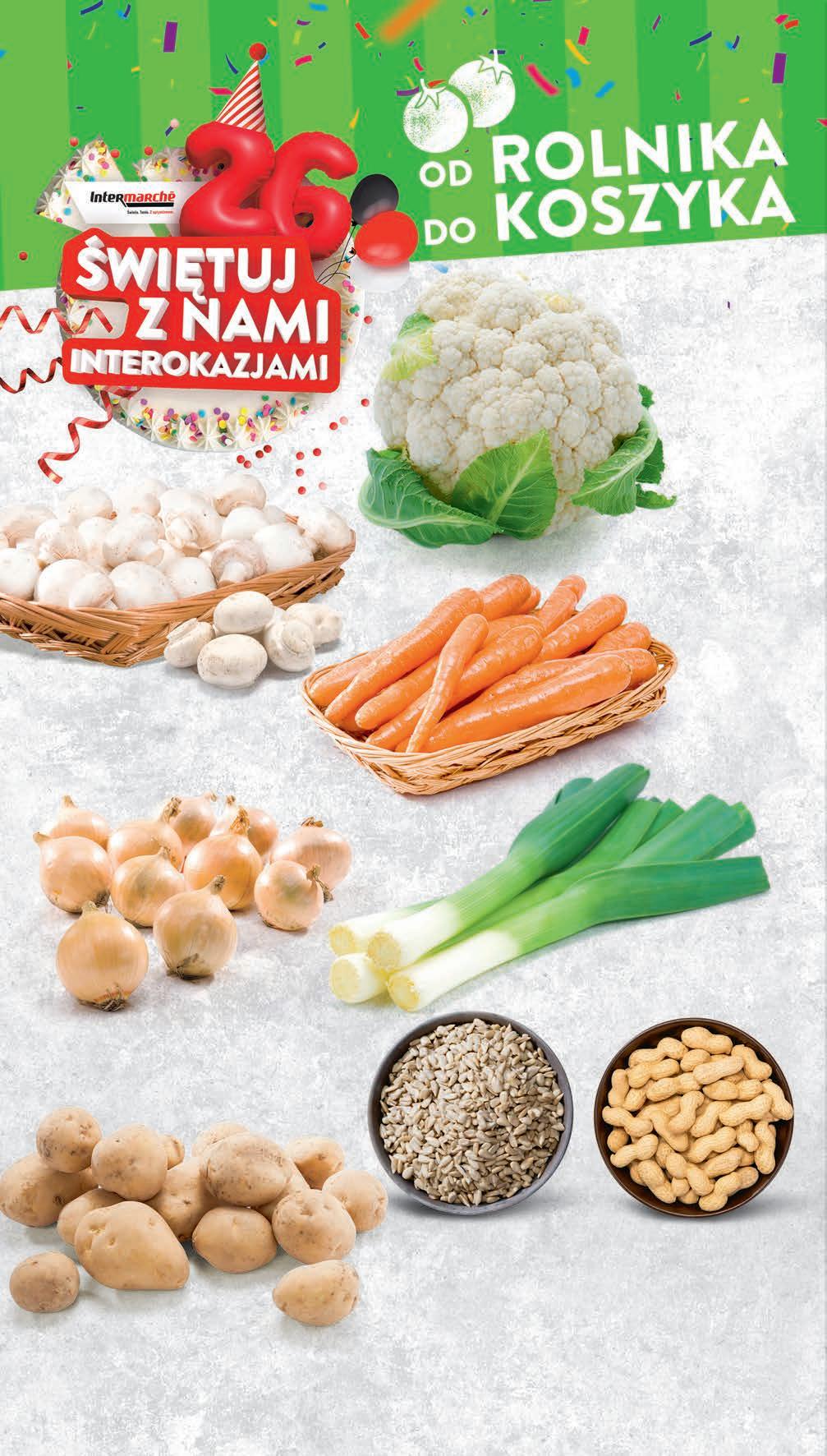 TANIO 449 1 szt. Kalafior 1499 1 opak. 15,99 * PROMO! Słonecznik 1 kg *Najniższa cena z 30 dni przed obniżką 1699 1 kg 19,99 * -15% Fistaszki luz *Najniższa cena z 30 dni przed obniżką TANIO 199 1 kg Ziemniak luz TANIO 999 1 kg Pieczarki luz TANIO 199 1 kg Marchew luz TANIO 249 1 kg Cebula luz TANIO 279 1 szt. Por