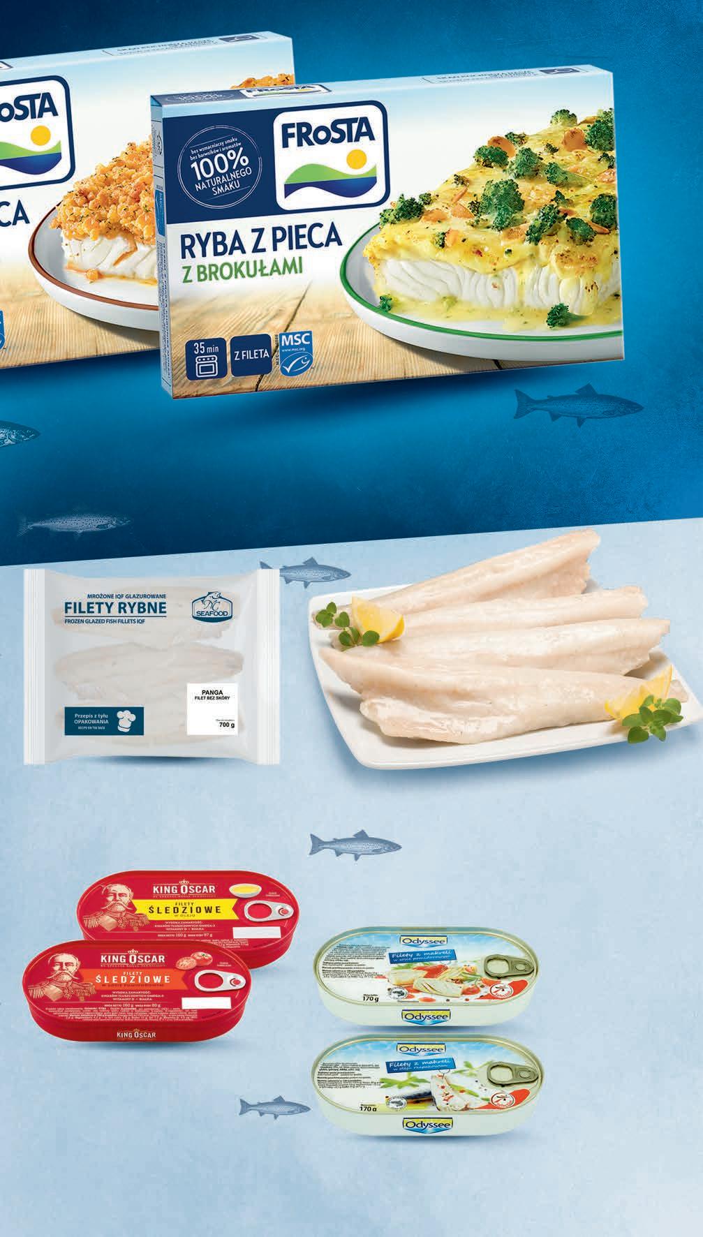 CZWARTEK – ŚRODA 14 - 20 września 2399 1 kg 29,99 * -20% Limanda filet bez skóry 30% glazury *Cena sprzed pierwszego zastosowania obniżki 1399 1 opak. 16,49 * -15% Ryba z pieca FROSTA wybrane rodzaje 330 - 375 g od 37,31 do 42,39 zł / 1 kg *Cena sprzed pierwszego zastosowania obniżki RABAT NALICZANY PRZY KASIE Filety z makreli ODYSSEE wybrane rodzaje 170 g, 28,18 zł / 1 kg w sosie pomidorowym - 4,95 zł* w oleju rzepakowym - 5,99 zł* *Najniższa cena z 30 dni przed obniżką Panga NC SEAFOOD filet bez skóry 700 g 24,27 zł / 1 kg TANIO 1699 1 opak. Filety śledziowe KING OSCAR wybrane rodzaje 160 g, 31,19 zł / 1 kg w oleju - 5,59 zł* w sosie pomidorowym - 5,99 zł* *Najniższa cena z 30 dni przed obniżką 499 1 szt. PROMO! 479 1 szt. PROMO!