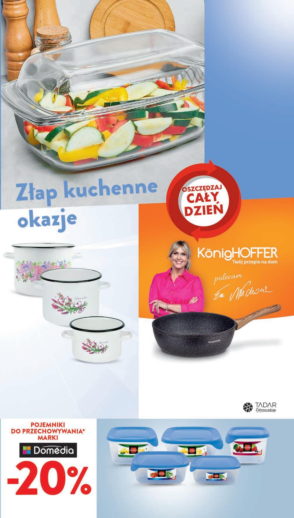 4999 1 szt. 69,99 * -28% Naczynie szklane żaroodporne z pokrywką prostokątne poj. 5,8 l *Najniższa cena z 30 dni przed obniżką 6999 1 szt. 89,99 * -22% Patelnia granitowa głęboka śr. 24 cm w ofercie dostępna również śr. 28 cm - 109,00 zł* - 79,99 zł *Najniższa cena z 30 dni przed obniżką CZWARTEK – ŚRODA 14 - 20 września *DOTYCZY WYBRANYCH PRODUKTÓW Garnek emaliowany śr. 16 cm, poj. 2 l w ofercie dostępne również: śr. 18 cm, poj. 3 l - 44,99 zł* - 39,99 zł śr. 20 cm, poj. 4,5 l - 49,99 zł* - 44,99 zł śr. 22 cm, poj. 5,5 l - 57,99 zł* - 49,99 zł z motywem lawendy lub hortensji *Najniższa cena z 30 dni przed obniżką