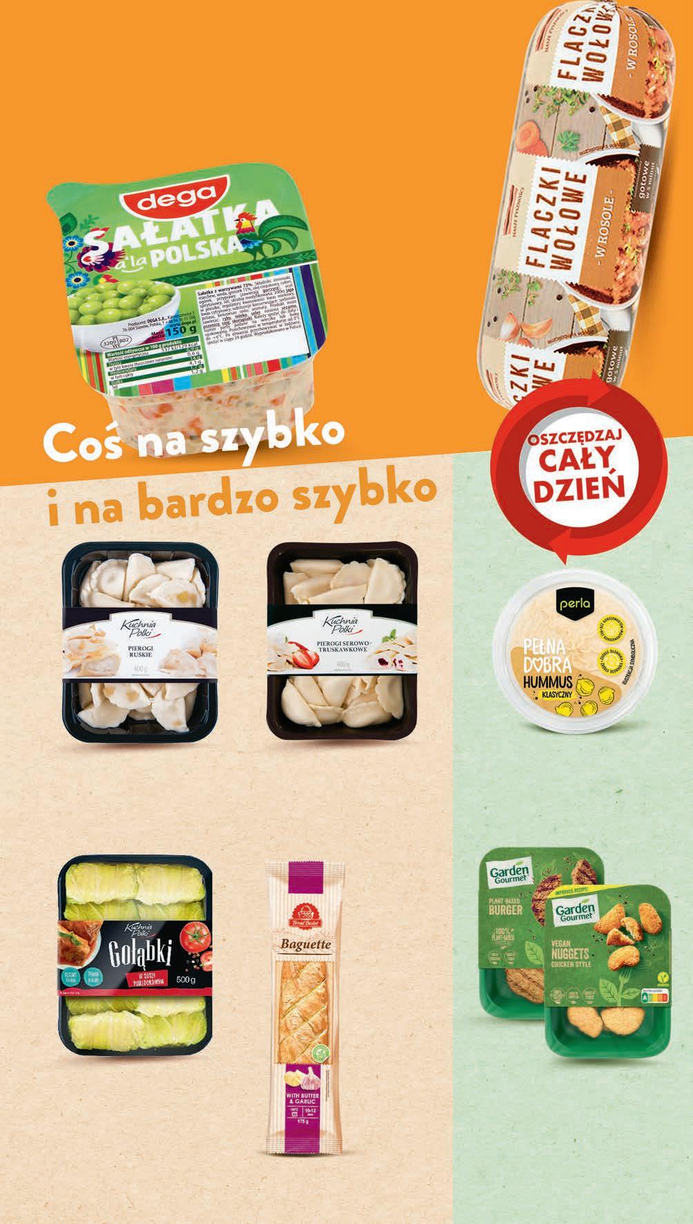 Pierogi KUCHNIA POLKI wybrane rodzaje 400 g 24,98 zł / 1 kg TANIO 999 1 opak. 999 1 opak. 11,99 * -16% Pierogi KUCHNIA POLKI wybrane rodzaje 400 g, 24,98 zł / 1 kg *Cena sprzed pierwszego zastosowania obniżki Sałatka DEGA wybrane rodzaje 150 g , 14,60 zł / 1 kg *Cena sprzed pierwszego zastosowania obniżki 219 1 opak. 3,49 * -37% Bagietka ARYZTA wybrane rodzaje 175 g , 1,94 zł / 100 g *Cena sprzed pierwszego zastosowania obniżki 339 1 szt. 3,79 * -10% Hummus PERLA wybrane rodzaje 130 g , 30,69 zł / 1 kg *Cena sprzed pierwszego zastosowania obniżki 399 1 opak. 4,49 * -11% Gołąbki KUCHNIA POLKI w sosie pomidorowym 500 g, 29,98 zł / 1 kg *Cena sprzed pierwszego zastosowania obniżki 1499 1 opak. 18,49 * -18% Danie wegetariańskie GARDEN GOURMET wybrane rodzaje 4 x 150 g - 4 x 200 g od 16,24 do 21,65 zł / 1 kg TANIO 12992-pack 899 1 opak. PROMO! Flaczki NASZE PYSZNOŚCI wybrane rodzaje 900 g, 9,99 zł / 1 kg w rosole - 9,99 zł* w pomidorach - 11,99 zł* *Cena sprzed pierwszego zastosowania obniżki