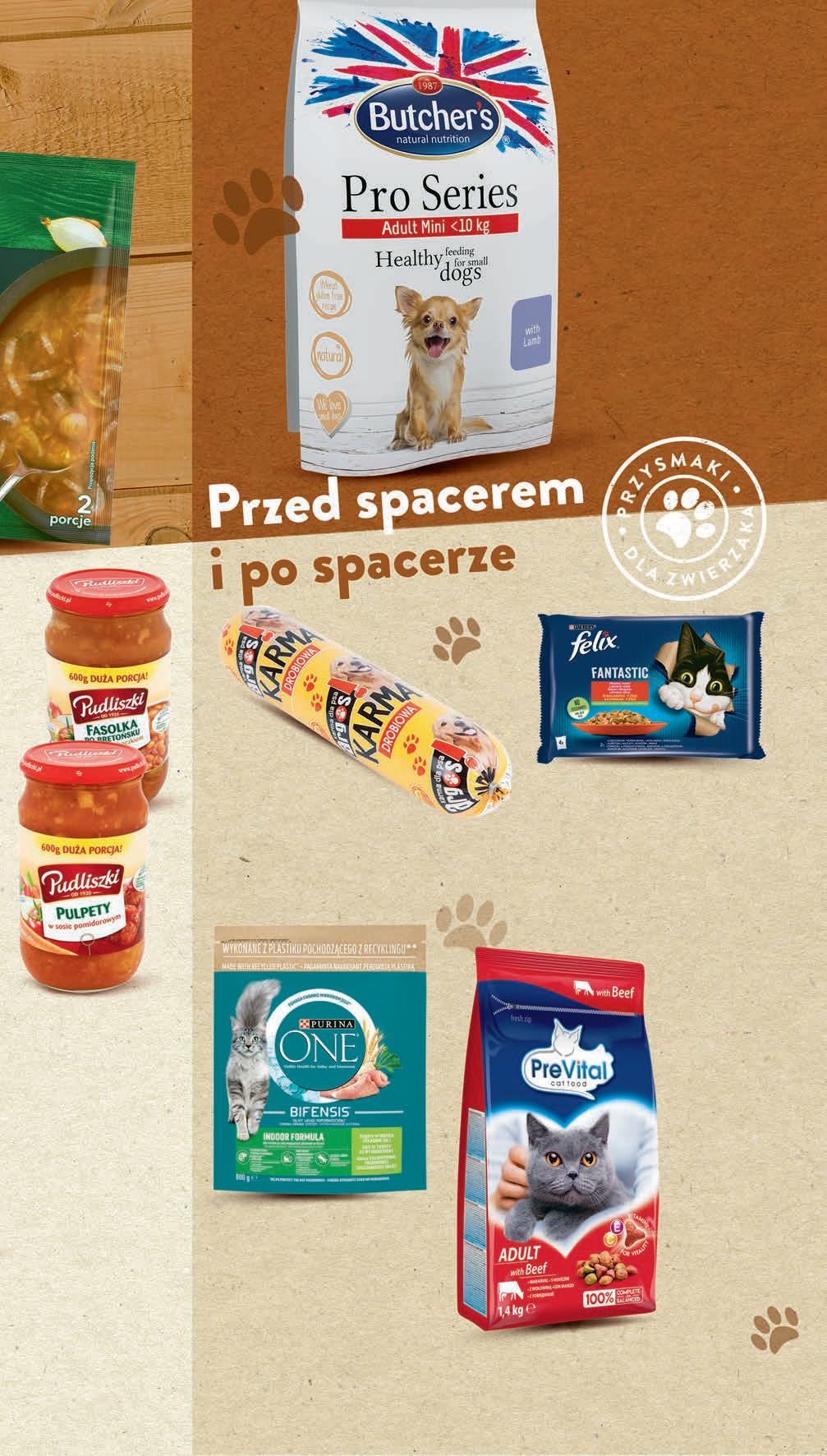 Karma dla psa BUTCHER’S PRO SERIES wybrane rodzaje 800 g, 24,99 zł / 1 kg *Najniższa cena z 30 dni przed obniżką 1999 1 opak. 24,69 * -19% Danie PUDLISZKI wybrane rodzaje 600 g , 13,32 zł / 1 kg fasolka po bretońsku z kiełbasą i boczkiem, klopsiki w sosie pomidorowym, pulpety w sosie pomidorowym - 9,99 zł* gołąbki w sosie pomidorowym - 10,49 zł* *Najniższa cena z 30 dni przed obniżką możliwy MIX rodzajów 799 1 szt. PROMO! przy zakupie 2 szt. Karma dla psa ARGOS wybrane rodzaje 850 g , 4,69 zł / 1 kg *Najniższa cena z 30 dni przed obniżką 399 1 opak. 4,99 * -20% CZWARTEK – ŚRODA 14 - 20 września Karma PREVITAL wybrane rodzaje 1,4 kg, 12,14 zł / 1 kg *Najniższa cena z 30 dni przed obniżką Karma dla kota PURINA ONE wybrane rodzaje 800 g , 22,49 zł / 1 kg *Najniższa cena z 30 dni przed obniżką 1799 1 opak. 21,95 * -18% Karma dla kota FELIX wybrane rodzaje 4 x 85 g , 20,56 zł / 1 kg *Najniższa cena z 30 dni przed obniżką 699 1 zestaw 9,99 * -30% 1699 1 opak. 19,99 * -15%