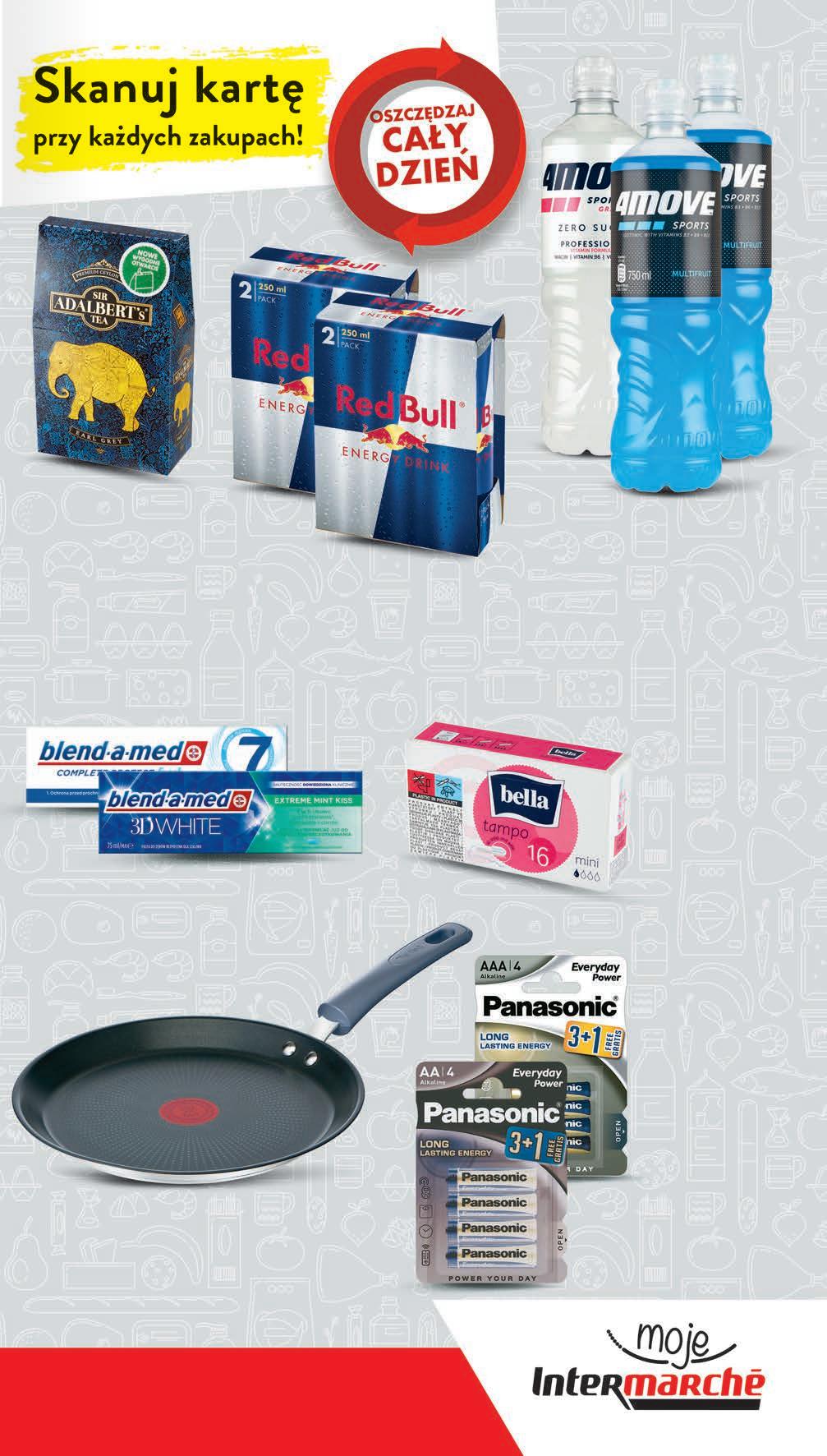 6999 1 szt. 99,99 * -30% Patelnia do naleśników TEFAL DAILY COOK śr. 25 cm *Najniższa cena z 30 dni przed obniżką i cena bez karty 229 1 szt. przy zakupie 3 szt. 3,09 * -25% Napój izotoniczny 4 MOVE wybrane rodzaje 0,75 l, 3,05 zł / 1 l *Najniższa cena z 30 dni przed obniżką i cena bez karty możliwy MIX rodzajów 9582-pack drugi 2-pack -33% przy zakupie 2x2-pack 11,49 * Napój energetyzujący RED BULL 2 x 0,25 l, 19,16 zł / 1 l *Najniższa cena z 30 dni przed obniżką i cena bez karty 699 1 opak. 9,29 * -24% Tampony BELLA wybrane rodzaje 16 szt., 0,44 zł / 1 szt. *Najniższa cena z 30 dni przed obniżką i cena bez karty 799 1 opak. 9,99 * -20% Bateria PANASONIC AA AAA 4 szt. *Najniższa cena z 30 dni przed obniżką i cena bez karty CZWARTEK – ŚRODA 14 - 20 września RABAT NALICZANY PRZY KASIE 4,79 zł za puszkę Herbata ADALBERT’S liściasta wybrane rodzaje 100 g *Najniższa cena z 30 dni przed obniżką i cena bez karty 1399 1 opak. 18,99 * -26% Pasta do zębów BLEND A MED wybrane rodzaje 75 ml, 8,79 zł / 100 ml *Najniższa cena z 30 dni przed obniżką Cena bez karty 8,79 zł TANIO 659 1 szt.