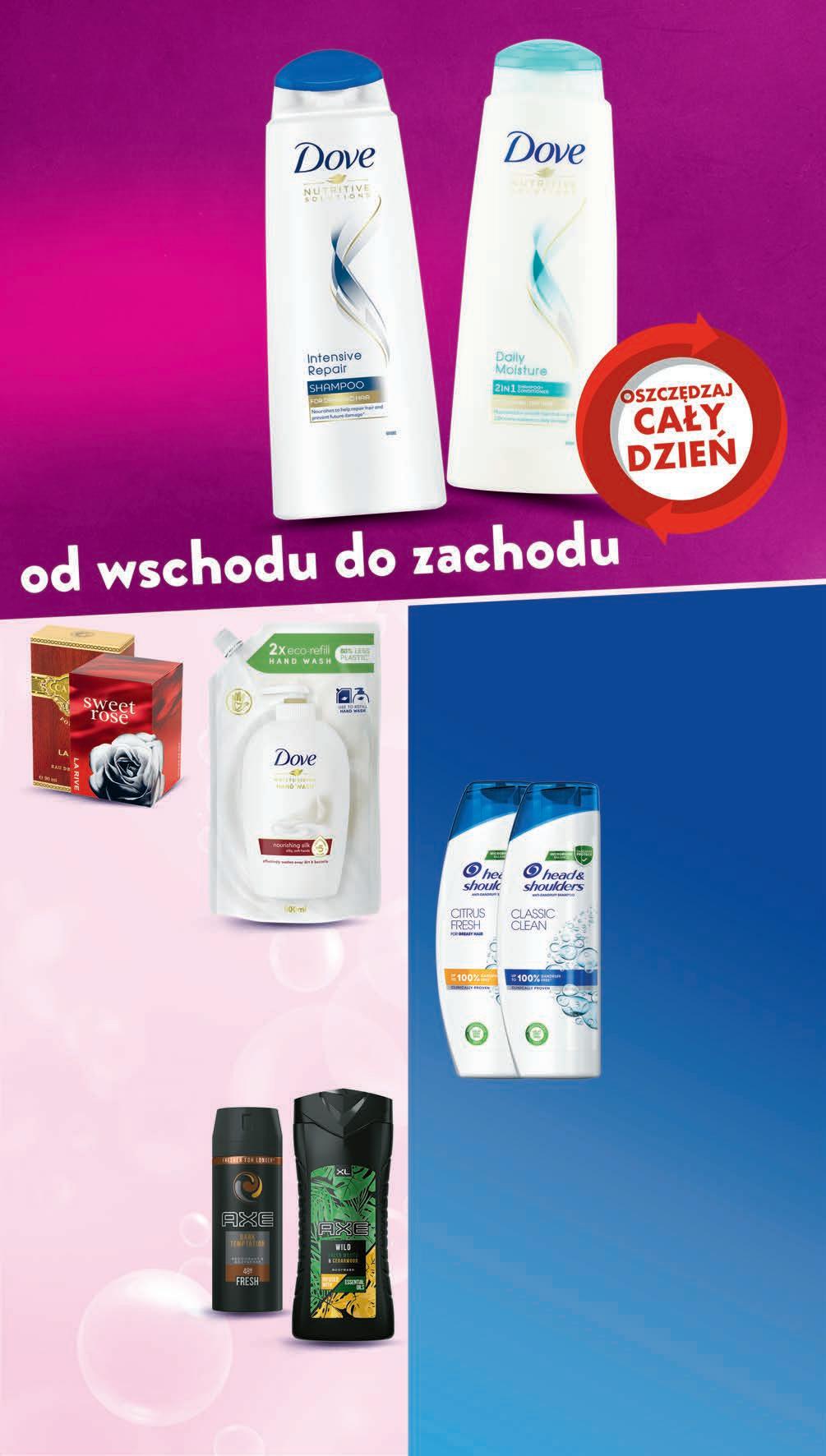 PROMOCJA 14 - 27.09 1299 1 szt. 19,99 * -35% • Szampon do włosów • Szampon i Odżywka do włosów 2w1 DOVE wybrane rodzaje 400 ml, 32,48 zł / 1 l *Najniższa cena z 30 dni przed obniżką PROMOCJA 14 - 27.09 2199 1 szt. 26,79 * -17% • Woda perfumowana • Woda toaletowa LA RIVE wybrane rodzaje 75 - 100 ml od 21,99 do 29,32 zł / 100 ml *Najniższa cena z 30 dni przed obniżką 2099 1 szt. 25,99 * -19% • Szampon do włosów • Szampon i Odżywka do włosów 2w1 HEAD&SHOULDERS wybrane rodzaje 360-400 ml od 52,48 do 58,31 zł / 1 l *Najniższa cena z 30 dni przed obniżką PROMOCJA 14 - 27.09 Mydło w płynie DOVE zapas wybrane rodzaje 500 ml, 15,98 zł / 1 l TANIO 799 1 szt. 1499 1 szt. -21% Żel pod prysznic 400 ml, 37,48 zł / 1 l Dezodorant spray, 150 ml, 9,99 zł / 100 ml AXE wybrane rodzaje dozedorant spray: Africa, black, dark temptation, wild green mojito & cedarwood, żel pod prysznic: anti hangover, ice chill, wild green mojito & cedarwood - 18,99 zł* epic fresh - 18,99 zł** *Najniższa cena z 30 dni przed obniżką **Najniższa cena od wprowadzenia towaru
