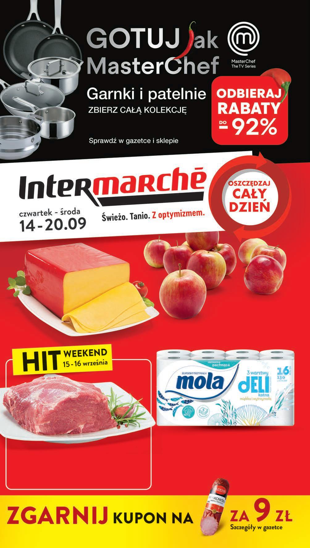 Oferta promocyjna nr 37/2023 ważna w dniach wskazanych na stronach lub do wyczerpania zapasu. Sklepy w których obowiązuje promocja gazetkowa dostępne na stronie www.intermarche.pl. Sprzedaż wyłącznie detaliczna. Ceny zawierają podatek VAT. Ze względu na franczyzowy charakter sieci Intermarché, lokalnie ceny w sklepach mogą się różnić. Zdjęcia i wygląd towarów w gazetce mogą nieznacznie odbiegać od rzeczywistości. Za ewentualne błędy w druku uprzejmie przepraszamy.