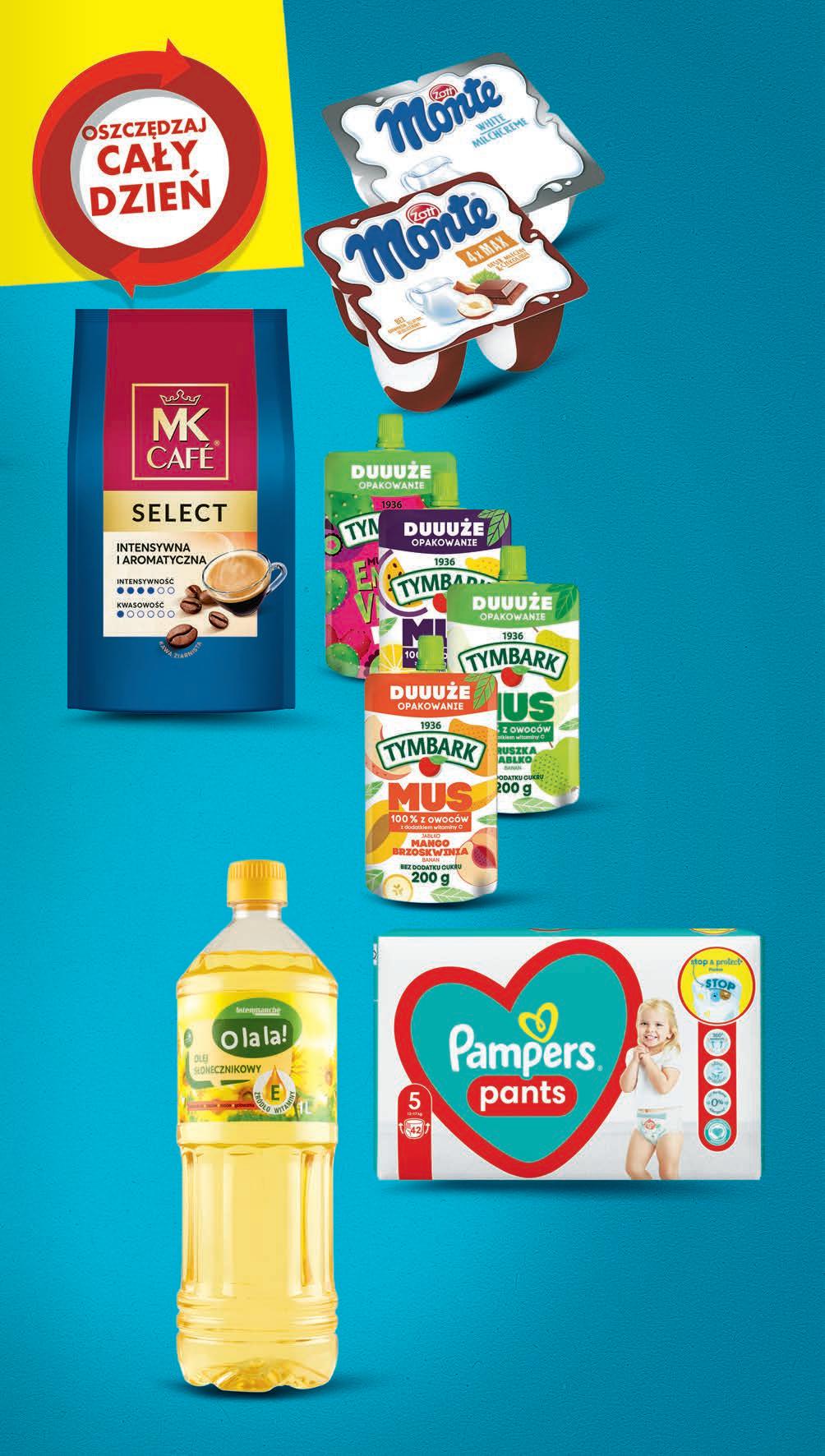 1 kg 4499 1 opak. 61,79 * -27% Kawa ziarnista MK CAFE Select 1 kg *Najniższa cena z 30 dni przed obniżką 6594-pack drugi 4-pack -50% przy zakupie 2x4-pack 8,79 * Monte ZOTT wybrane rodzaje 4 x 100 g 1,65 zł / 100 g *Cena sprzed pierwszego zastosowania obniżki możliwy MIX rodzajów 289 1 szt. przy zakupie 4 szt. PROMO! Mus TYMBARK wybrane rodzaje 200 g, 1,45 zł / 100 g 100% z owoców z dodatkiem witaminy C - 3,59 zł* energy vibes - 3,69 zł * *Najniższa cena z 30 dni przed obniżką możliwy MIX rodzajów 5199 1 opak. 75,99 * -31% Pieluchomajtki dla dzieci PAMPERS PANTS wybrane rodzaje 36 - 56 szt. od 0,93 do 1,44 zł / 1 szt. *Najniższa cena z 30 dni przed obniżką LIMIT 2 opak. 2 RABAT NALICZANY PRZY KASIE Olej O LA LA! słonecznikowy 1 l CENA NALICZANA PRZY KASIE HIT 599 1 szt.