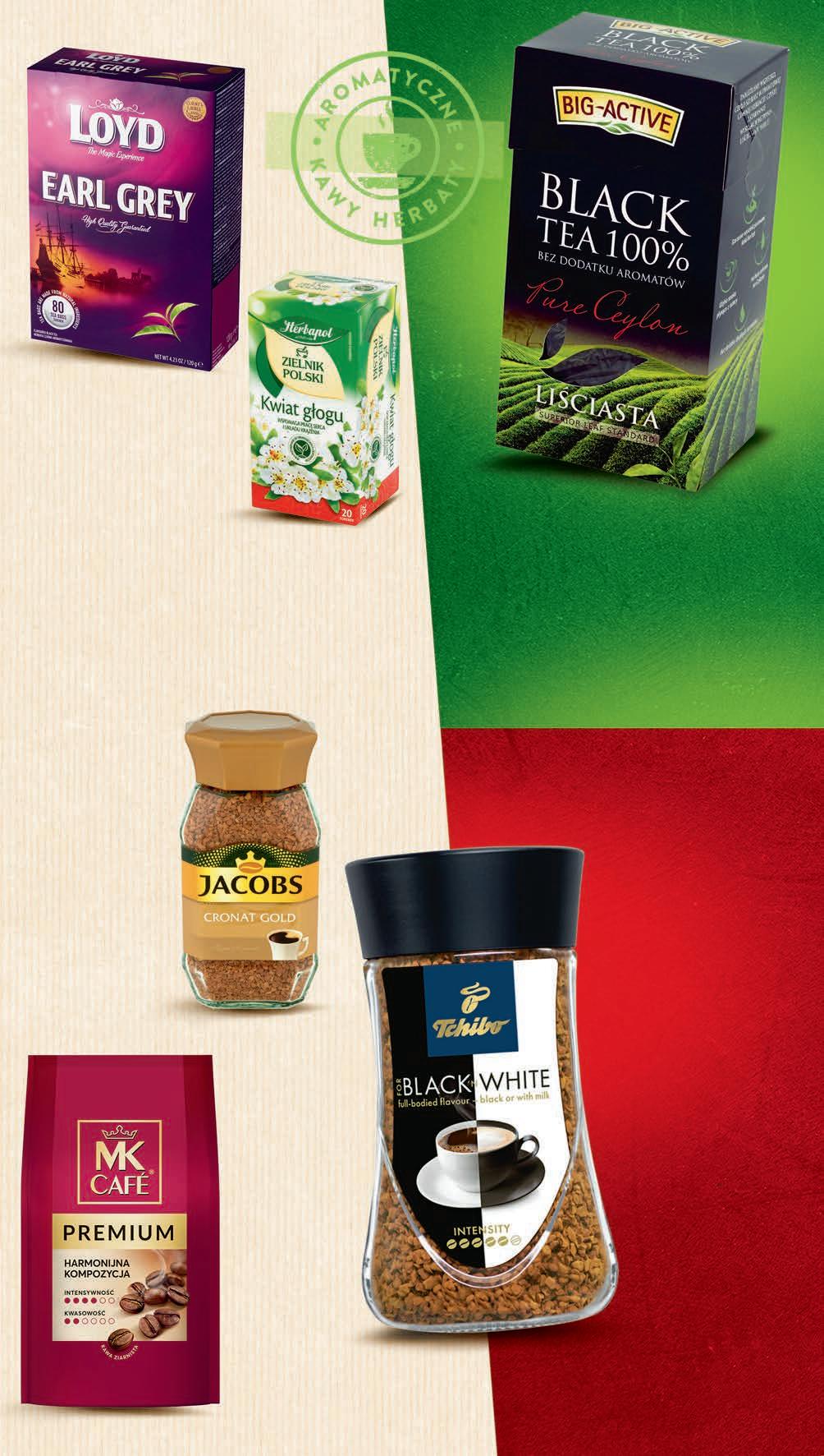 CZWARTEK – ŚRODA 20 – 26 kwietnia 1 kg Kawa rozpuszczalna TCHIBO wybrane rodzaje 180 - 200 g od 13,00 do 14,44 zł / 100 g Najniższa cena z 30 dni przed promocją 26,99 zł / 1 szt. Herbata BIG-ACTIVE Pure Ceylon 100 g 899 1 opak. 11,99 3 zł TANIEJ Najniższa cena z 30 dni przed promocją 11,99 zł / 1 opak. Herbata LOYD Earl Grey 80 torebek x 1,5 g 6,83 zł / 100 g 819 1 opak. 9,19 1 zł TANIEJ Najniższa cena z 30 dni przed promocją 9,19 zł / 1 opak. Kawa ziarnista MK CAFÉ wybrane rodzaje 1 kg Najniższa cena z 30 dni przed promocją 56,99 zł / 1 opak. Kawa rozpuszczalna JACOBS Cronat Gold 100 g Najniższa cena z 30 dni przed promocją 21,99 zł / 1 szt. 1999 1 szt. 21,99 2 zł TANIEJ Herbata HERBAPOL wybrane rodzaje 20 torebek x 2 - 3,5 g od 7,13 do 12,48 zł / 100 g Najniższa cena z 30 dni przed promocją 4,99 zł / 1 opak. 499 1 opak. do 6,19 do 1,20 zł TANIEJ -25% 4999 1 opak. do 6 1,99 do 12 zł TANIEJ 2599 1 szt. do 36,49 do 10,50 zł TANIEJ do -28%