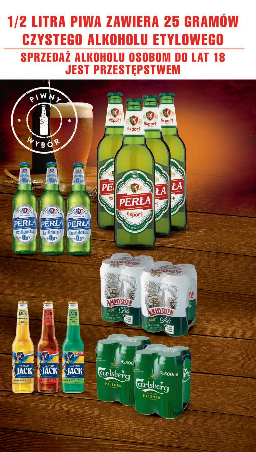 CZWARTEK – ŚRODA 20 – 26 kwietnia 349 1 puszka drugi 4-pack -38% przy zakupie 2x4-pack 4,32 Piwo CARLSBERG Premium Pilsner 4 x 0,5 l 13,96 zł / 4-pack 6,98 zł / 1 l cena regularna 17,29 zł / 4-pack 319 1 puszka drugi 4-pack -57% przy zakupie 2x4-pack 4,49 Piwo NAMYSŁÓW Pils 4 x 0,5 l 12,76 zł / 4-pack 6,38 zł / 1 l cena regularna 17,96 zł / 4-pack Piwo PERŁA Bezalkoholowa 0,5 l, 5,78 zł / 1 l 289 1 szt. przy zakupie 3 szt. 3,05 TANIO Piwo CAPTAIN JACK wybrane rodzaje 0,4 l, 12,48 zł / 1 l 499 1 szt. przy zakupie 3 szt. 5,79 TANIO możliwy MIX rodzajów Piwo PERŁA Export 0,5 l , 5,98 zł / 1 l 299 1 szt. przy zakupie 4 szt. 3,79 -21%