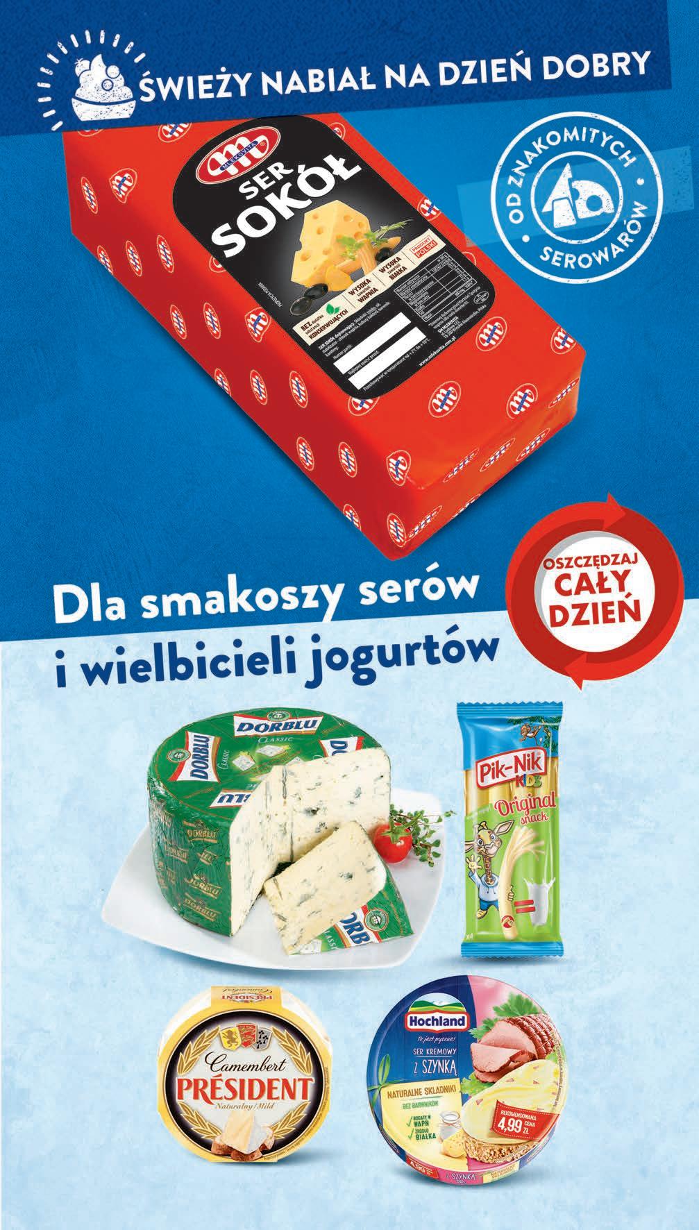 Ser Dor Blu Brot TEMAR TANIO 599 100 g Ser Sokół MLEKOVITA TANIO 279 100 g Paluszki serowe PIK-NIK Original 80 g, 5,61 zł / 100 g 449 1 opak. 4,99 TANIO Ser kremowy HOCHLAND wybrane rodzaje 180 g, 3,33 zł / 100 g 599 1 opak. 6,59 TANIO • Camembert • Brie PRESIDENT wybrane rodzaje 120 - 125 g od 5,03 do 5,24 zł / 100 g 629 1 szt. 6,79 TANIO