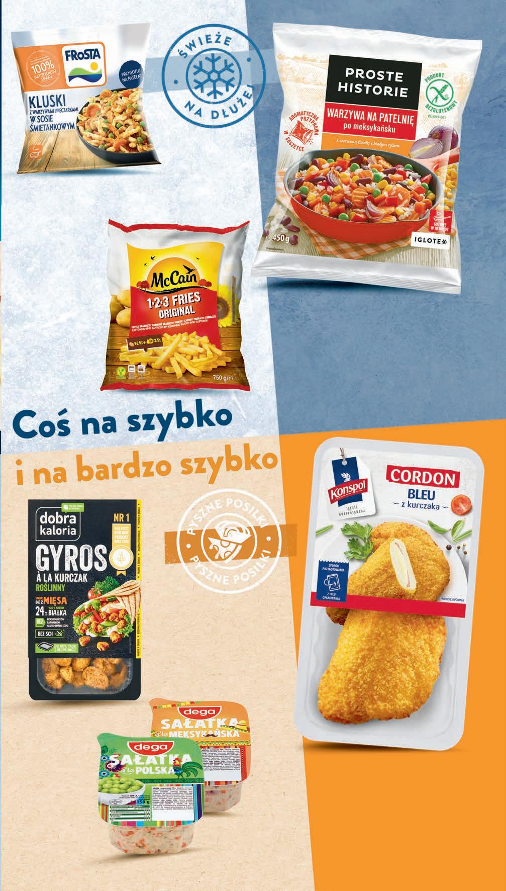 CZWARTEK – ŚRODA 20 – 26 kwietnia Gyros à la kurczak DOBRA KALORIA 150 g 53,27 zł / 1 kg 7 99 1 opak. 9,49 1,50 zł TANIEJ Cordon Bleu KONSPOL z kurczaka 250 g 31,96 zł / 1 kg 799 1 opak. 10,49 2,50 zł TANIEJ Frytki MCCAIN wybrane rodzaje 750 g, 9,32 zł / 1 kg 699 1 opak. 9,79 2,80 zł TANIEJ Warzywa na patelnię PROSTE HISTORIE wybrane rodzaje 450 g , 14,42 zł / 1 kg 649 1 opak. 7,49 1 zł TANIEJ -28% Makaron Tortellini Kluski FROSTA wybrane rodzaje 450 g, 19,98 zł / 1 kg 899 1 opak. do 10,49 do 1,50 zł TANIEJ Sałatka DEGA wybrane rodzaje 150 g, 19,93 zł / 1 kg 299 1 opak. 3,49 TANIO -23%