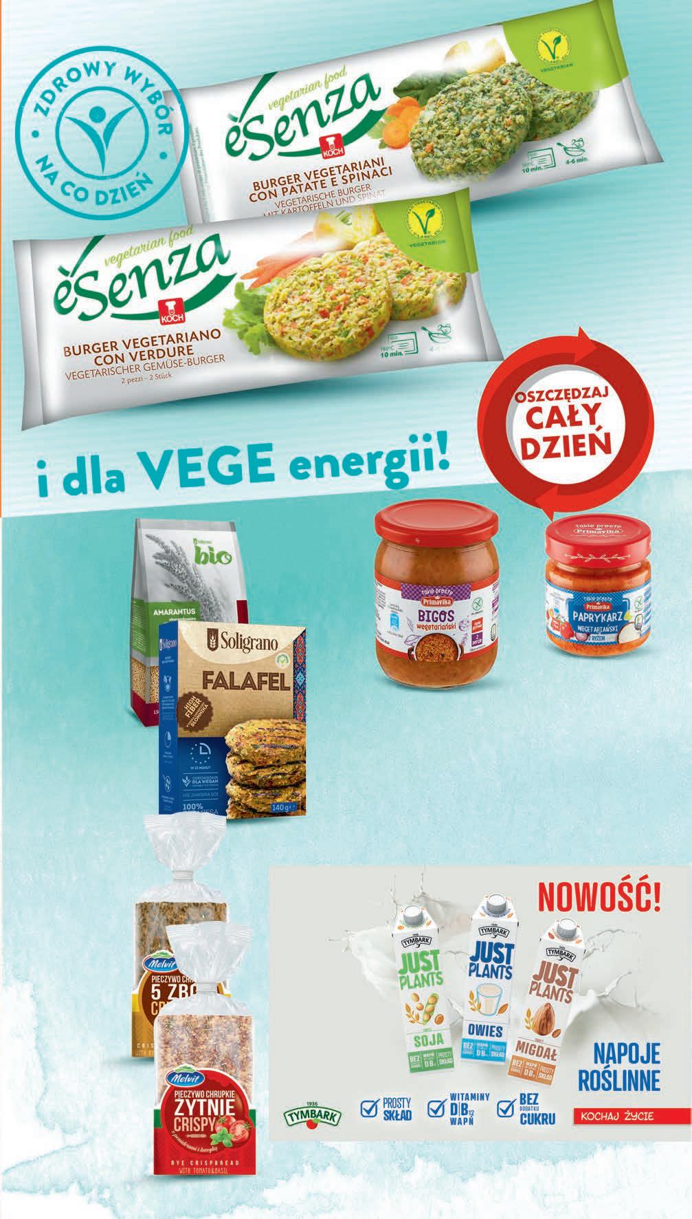 CZWARTEK – ŚRODA 20 – 26 kwietnia Pieczywo chrupkie MELVIT wybrane rodzaje 130 g, 2,68 zł / 100 g 349 1 opak. drugi produkt -44% przy zakupie 2 opak. 4,49 możliwy MIX rodzajów Vege Burgery KOCH wybrane rodzaje 2 x 90 - 100 g od 44,95 do 49,94 zł / 1 kg Napój roślinny TYMBARK wybrane rodzaje 1 l 799 1 szt. 9,99 2 zł TANIEJ Najniższa cena z 30 dni przed promocją 9,99 zł / 1 szt. -20% -23% -20% TANIO 899 1 opak. • Falafel Vege • Pszenica w miodzie z truskawkami • Amarantus ekspandowany • Gryka ekspandowana • Vege Burger SOLIGRANO 60 - 150 g od 29,93 do 74,83 zł / 1 kg 449 1 opak. do 8,79 do 4,30 zł TANIEJ Najniższa cena z 30 dni przed promocją 4,78 zł / 1 opak. do -48% • Danie wegetariańskie • Pasta wegetariańska • Smalczyk wegetariański PRIMAVIKA wybrane rodzaje 160 - 480 g od 13,52 do 40,56 zł / 1 kg 649 1 szt. 8,19 1,70 zł TANIEJ Najniższa cena z 30 dni przed promocją 8,19 zł / 1 szt. 499 1 szt. 6,49 1,50 zł TANIEJ • Paprykarz wegetariański • Pasztet warzywny z cieciorki PRIMAVIKA 160 g, 31,19 zł / 1 kg Najniższa cena z 30 dni przed promocją 6,49 zł / 1 szt.