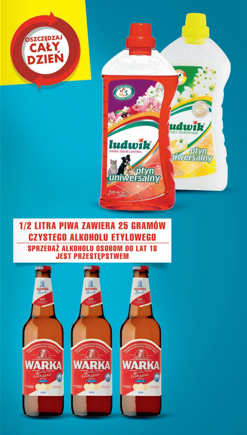 -41% 529 1 szt. 8,99 3,70 zł TANIEJ Płyn uniwersalny LUDWIK wybrane rodzaje 1 l Najniższa cena z 30 dni przed promocją 8,99 zł / 1 szt. Piwo WARKA Classic 0,5 l , 4,98 zł / 1 l butelka zwrotna 249 1 szt. przy zakupie 3 szt. 3,49 -28%
