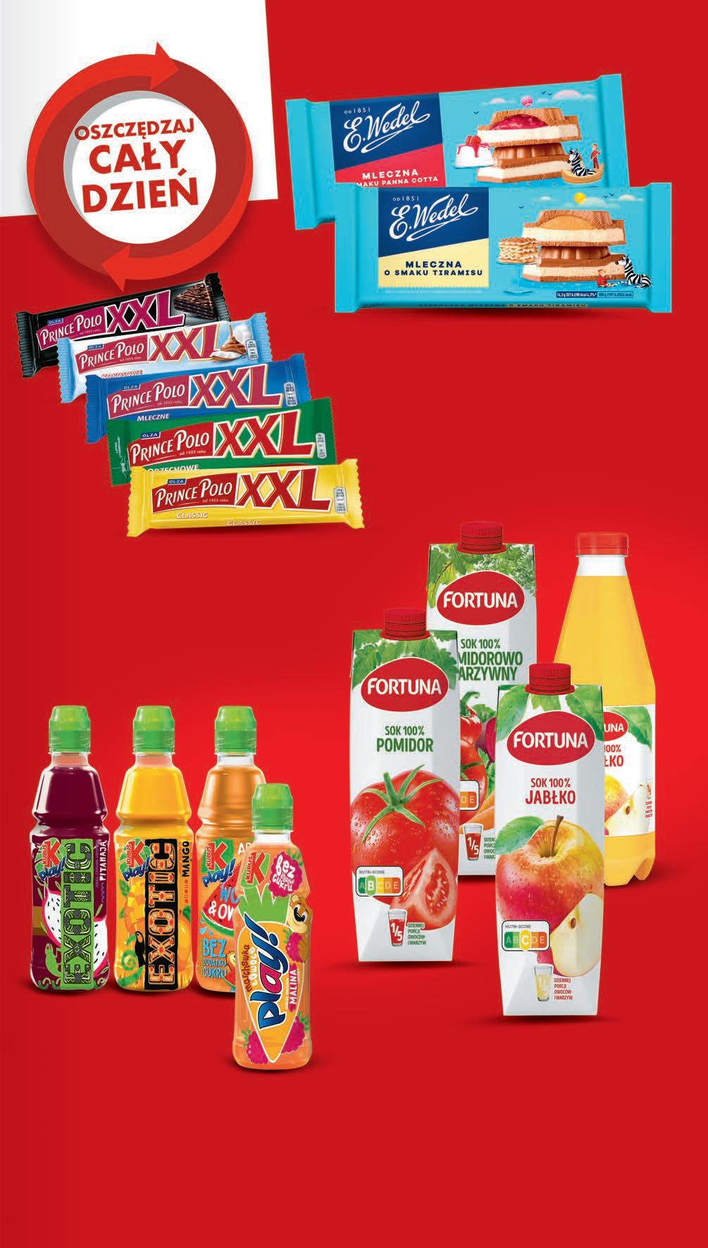 Prince Polo OLZA wybrane rodzaje 50 g , 2,78 zł / 100 g 139 1 szt. przy zakupie 5 szt. 1,67 TANIO możliwy MIX rodzajów Czekolada E. WEDEL wybrane rodzaje 220 - 293 g od 3,41 do 4,54 zł / 100 g 999 1 szt. drugi produkt -33% przy zakupie 2 szt. 11,99 możliwy MIX rodzajów Napój niegazowany KUBUŚ PLAY! wybrane rodzaje 0,4 l , 5,98 zł / 1 l 239 1 szt. przy zakupie 4 szt. 2,75 TANIO możliwy MIX rodzajów Sok 100% FORTUNA wybrane rodzaje 1 l 389 1 szt. przy zakupie 4 szt. 4,79 TANIO możliwy MIX rodzajów DUŻA CZEKOLADA