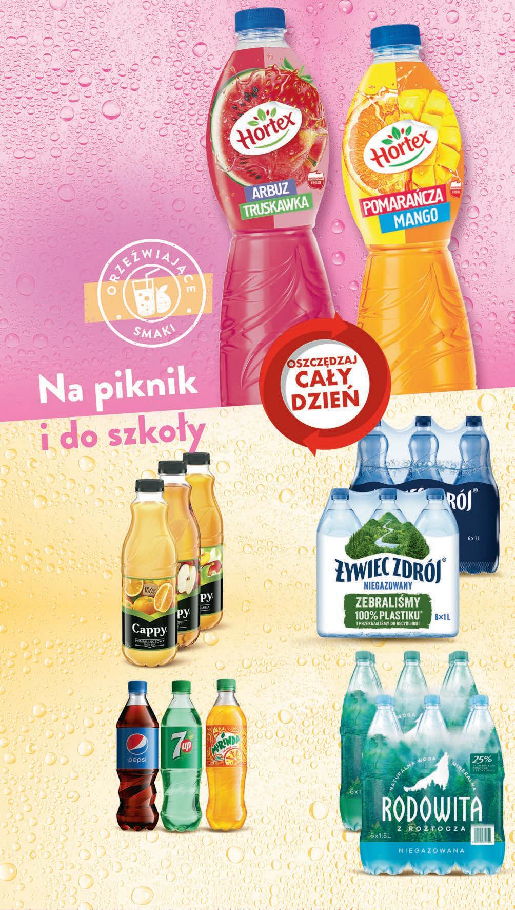 możliwy MIX rodzajów Pepsi Mirinda 7 Up 0,5 l, 7,78 zł / 1 l wybrane rodzaje 389 1 szt. przy zakupie 3 szt. 4,49 TANIO możliwy MIX rodzajów • Sok 100% • Napój niegazowany CAPPY wybrane rodzaje 1 l 399 1 szt. przy zakupie 3 szt. do 5,19 do-23% Woda mineralna RODOWITA wybrane rodzaje 1,5 l, 1,06 zł / 1 l możliwy MIX rodzajów 159 1 szt. przy zakupie 12 szt. 1,99 -20% Woda źródlana ŻYWIEC ZDRÓJ wybrane rodzaje 1 l możliwy MIX rodzajów 189 1 szt. przy zakupie 12 szt. 2,39 -20% Napój niegazowany HORTEX wybrane rodzaje 1,75 l, 1,71 zł / 1 l możliwy MIX rodzajów 299 1 szt. drugi produkt -42% przy zakupie 2 szt. 3,79