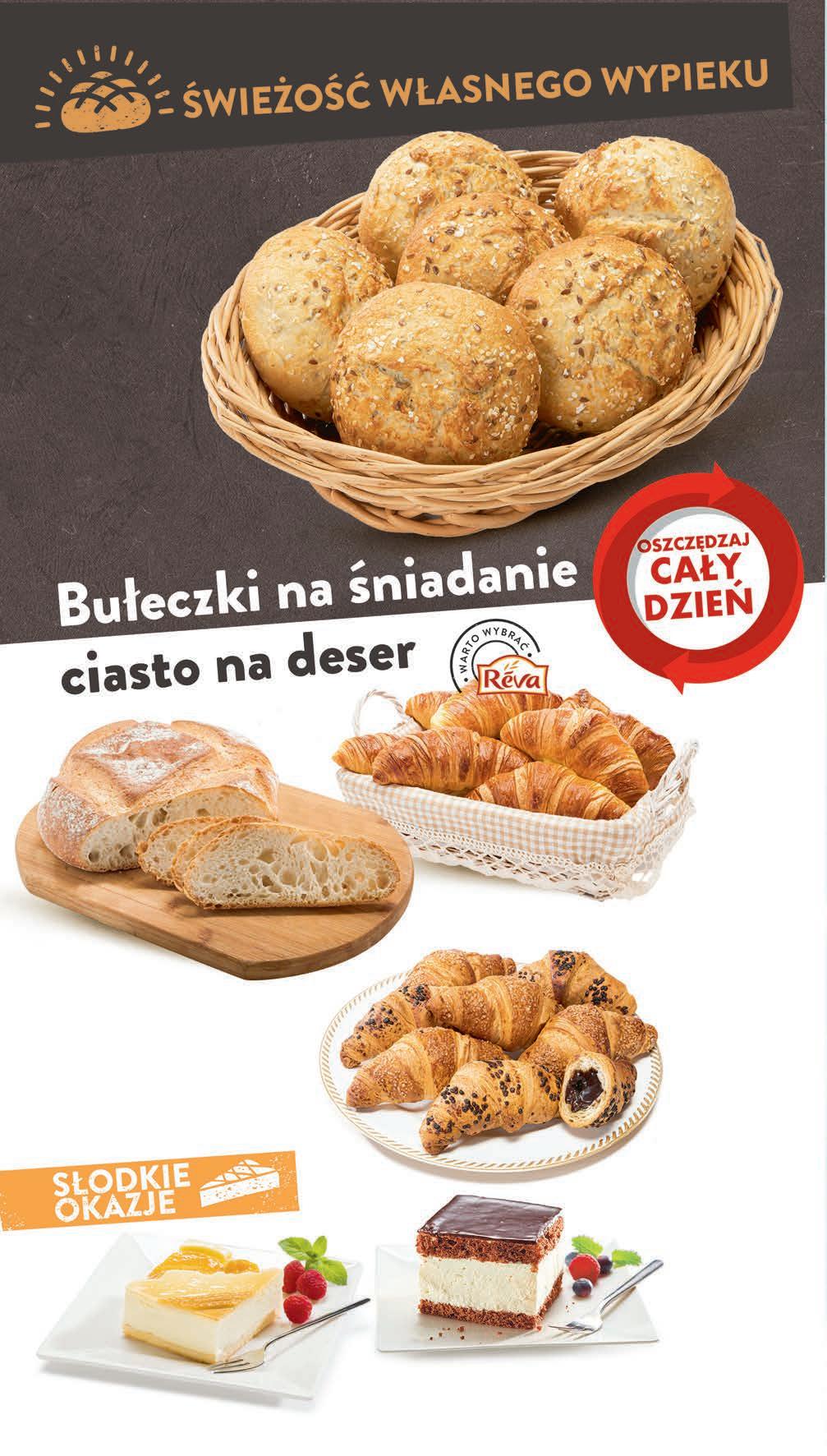 Bułka NOWEL wybrane rodzaje 80 - 85 g od 1,12 do 1,19 zł / 100 g 095 1 szt. przy zakupie 5 szt. do 1,39 4+1 GRATIS możliwy MIX rodzajów • Chleb dobrodzieja z zakwasem • Chleb pszeniczny z zakwasem LA LORRAINE 410 g, 10,22 zł / 1 kg 419 1 szt. do 4,69 TANIO Croissant REVA maślany 50 g, 3,18 zł / 100 g 159 1 szt. 1,89 TANIO Rogalik VANDEMOORTELE • orzech czekolada • z nadzieniem malinowym 85 - 90 g od 3,10 do 3,28 zł / 100 g TANIO 279 1 szt. • Ciasto W-Z • Sernik z brzoskwiniami TANIO 2499 1 kg czwartek - sobota 20 - 22.04