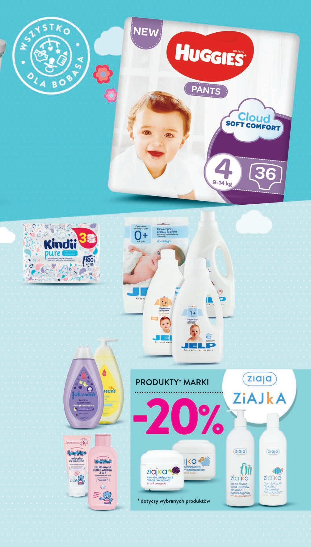 CZWARTEK – ŚRODA 20 – 26 kwietnia Pieluchomajtki dla dzieci HUGGIES PANTS wybrane rodzaje 30 - 36 szt. od 1,25 do 1,50 zł / 1 szt. TANIO 4499 1 opak. • Odplamiacz 1 l • Proszek do prania 1,12 kg , 22,76 zł / 1 kg 14 prań, 1,82 zł / 1 pranie • Mleczko do prania • Żel do prania 1,5 l, 16,99 zł / 1 l JELP wybrane rodzaje TANIO 2549 1 opak. Chusteczki nawilżane KINDII wybrane rodzaje 3 x 60 szt. 0,09 zł / 1 szt. Najniższa cena z 30 dni przed promocją 22,99 zł / 3-pack 16993-pack 23,99 7 zł TANIEJ -29% Kosmetyki dla dzieci JOHNSON’S BABY wybrane rodzaje 500 ml, 25,18 zł / 1 l możliwy MIX rodzajów 1259 1 szt. drugi produkt -20% przy zakupie 2 szt. 13,99 Kosmetyki dla dzieci BAMBINO wybrane rodzaje 200 - 400 ml od 27,48 do 54,95 zł / 1 l możliwy MIX rodzajów 1099 1 szt. przy zakupie 2 szt. do 15,49 drugi produkt 58% do