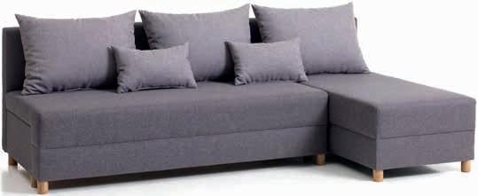 KANAPA Z SZEZLONGIEM HAMPEN 3-miejscowa kanapa w tapicerce z tkaniny. Siedzisko i oparcie wyściełane pianką. Ze schowkiem. Można odwracać ustawienie. Powierzchnia spania 110x213 cm S214 x W69 x G81/122 cm 1 SZT.