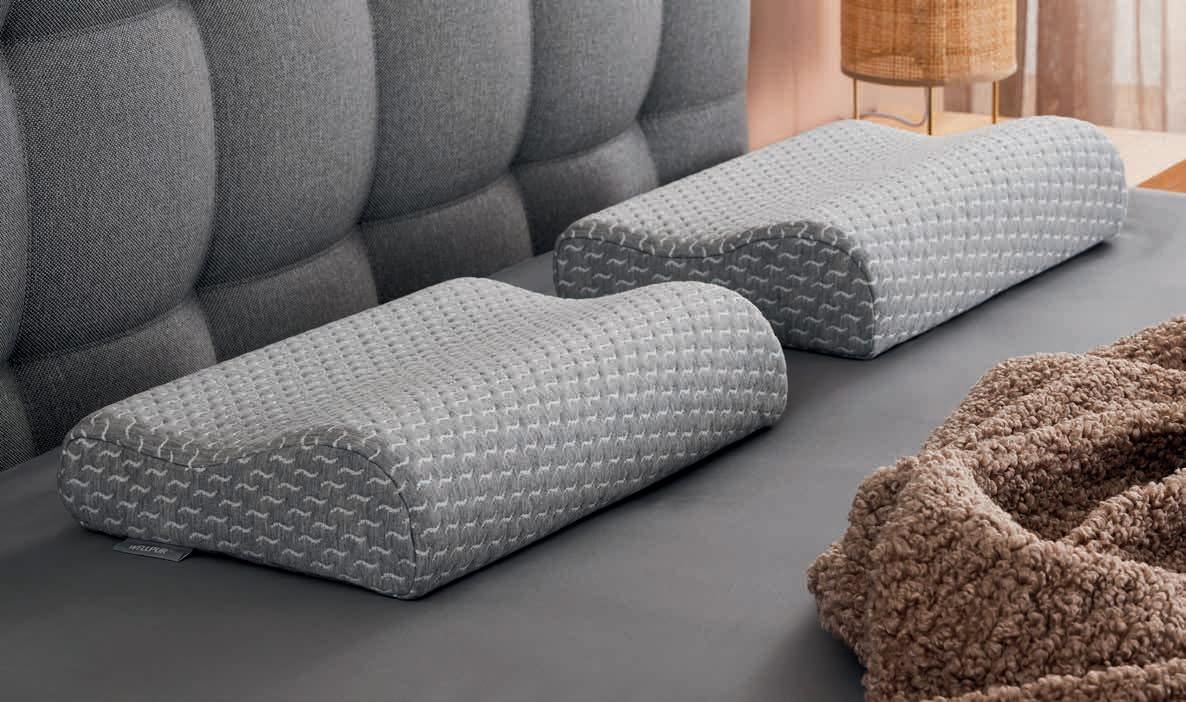 Ergonomiczna poduszka z wsadem z redukującej napięcie pianki termoelastycznej AIR. Poszycie 100% poliester, nadaje się do prania w 60°C. 30x50x10/7 cm 1 SZT.