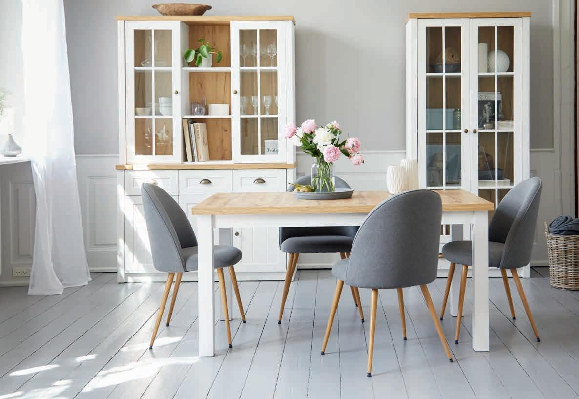 Stół: Lite drewno i okleina. Z 1 blatem dodatkowym, który można przechowywać pod stołem.