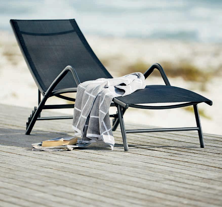 Krzesło: Aluminium i tekstylen. 6-pozycyjne. Składane.