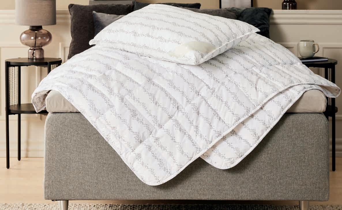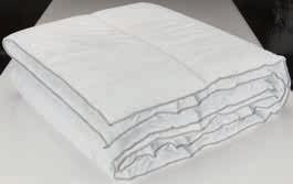 Praktyczna kołdra składająca się z 2 kołder spiętych guzikami. Przewiewny wsad z silikonowanego, spiralnego włókna rurkowego, 400/800 g. Miękkie poszycie w 100% z mikrowłókna poliestrowego. Pranie 60°C. 135x200 cm 1 SZT. 155x200 cm 135,200x220 cm 225,- 976-