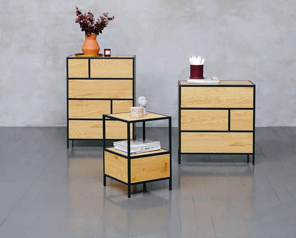 Okleina. Szuflady z możliwością pełnego wysunięcia. S130 x W53 x G53 cm* 1 SZT. 749,-