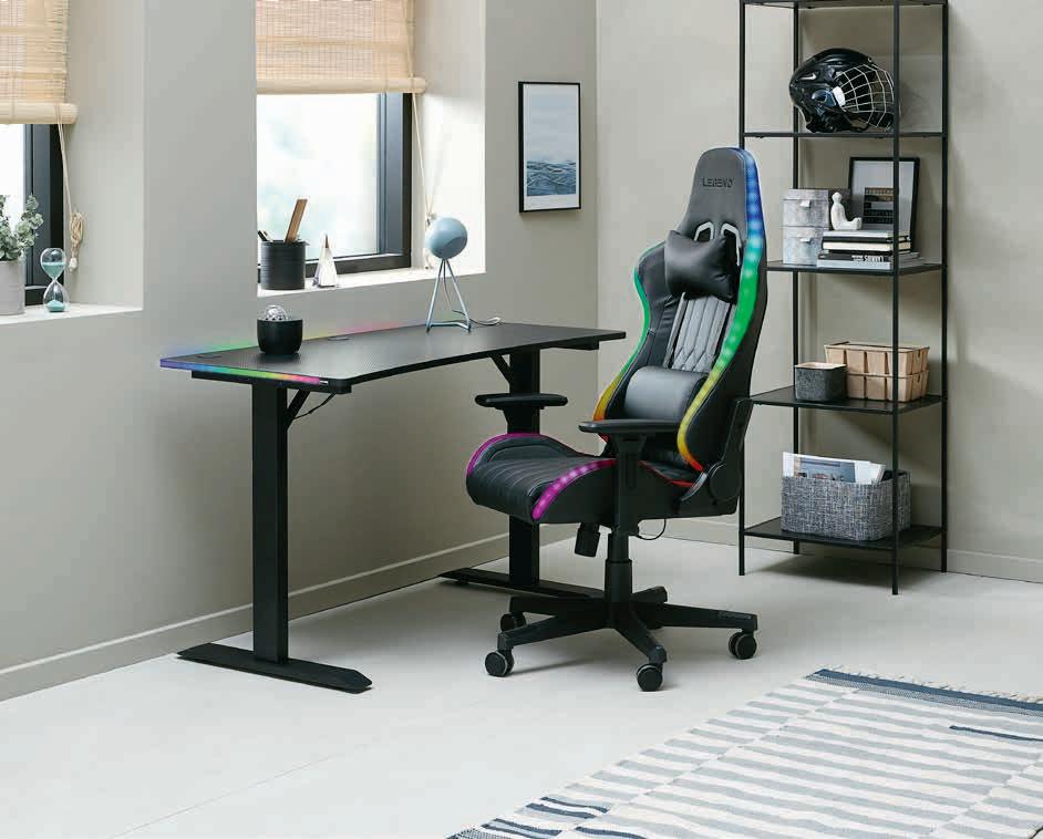 Skóra ekologiczna i siatka poliestrowa. Z wielokolorowym, zdalnie sterowanym oświetleniem LED. Regulowane podłokietniki i regulowana wysokość. S70 x W126-136 x G70 cm 1 SZT. 1299,-