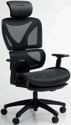 KRZESŁO GAMINGOWE GERLEV Siatka poliestrowa. Z podparciem lędźwi, regulacją zagłówka i wysokości, bezstopniową regulacją przechyłu i wbudowanym podnóżkiem. S70 x W116-126 x G70 cm 1 SZT.